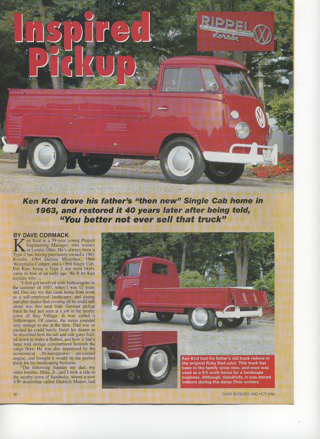 I met Dave Cormack of Hot VW's Magazine at the Porsche/VW Reunion in Cinncinati in 2005. He asked me if he could do a photo shoot of the single cab. Of course I said yes and much to my surprise this article appeared in the August 2006 issue of the magazine. Below are some of the original service documents that came with the SC. Wish I had the sales invoice, I remember handing the salesman my dads check for $2340.00.