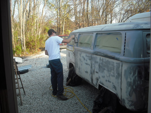 After a few hours with Brad, the 68 is now in primer and ready to be sanded again. I'm going to start tomorrow. Starting to shape up some.