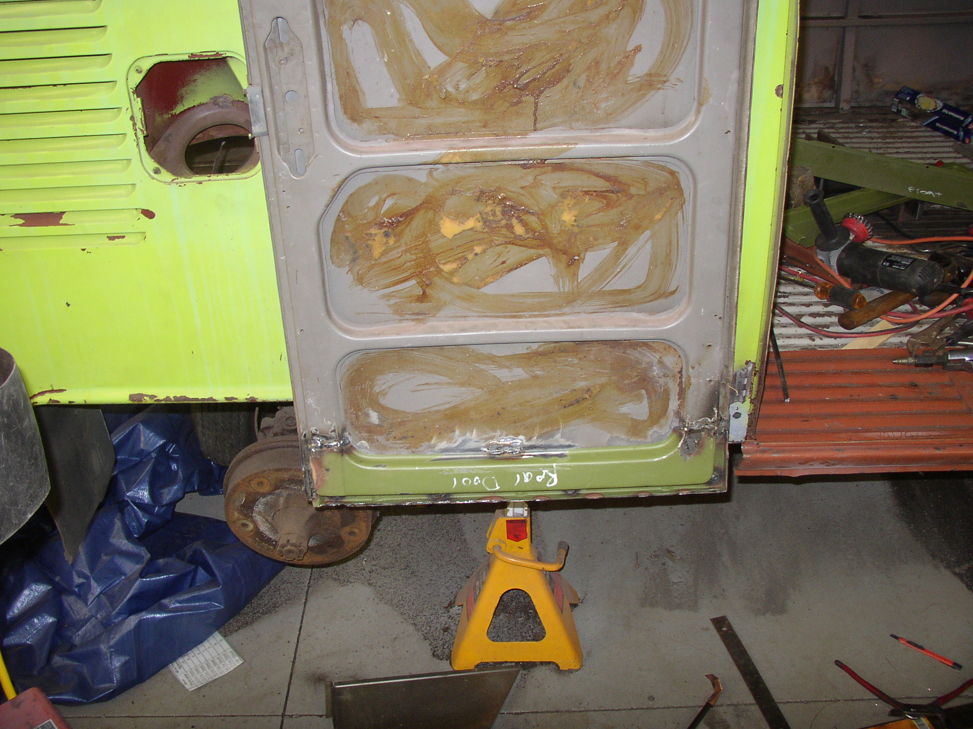I'm thinking it will be easier to do most of the cutting, fitting, and tacking with the door on the bus to maintain gaps and fit, and maybe pull it off to do the final welding. Is this how you did it? I do have Gerson inners/outers, but strangely they're different heights- I think one is 5" and one is 6" tall.