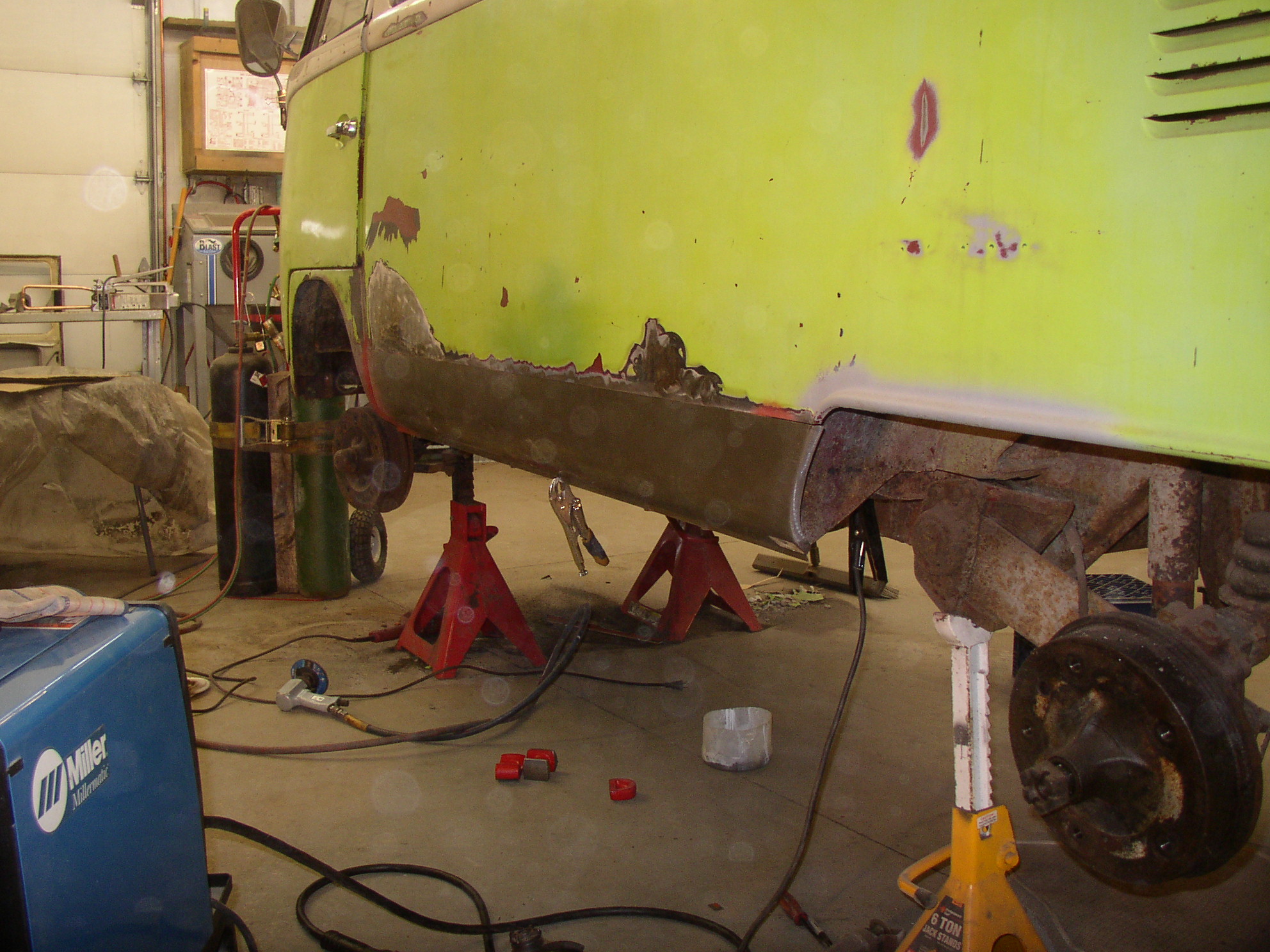 I moved the bus over so I have more working room on the driver's side using HF dollies. If they're strong enough to hold my fat ass, they'll certainly hold a bus.