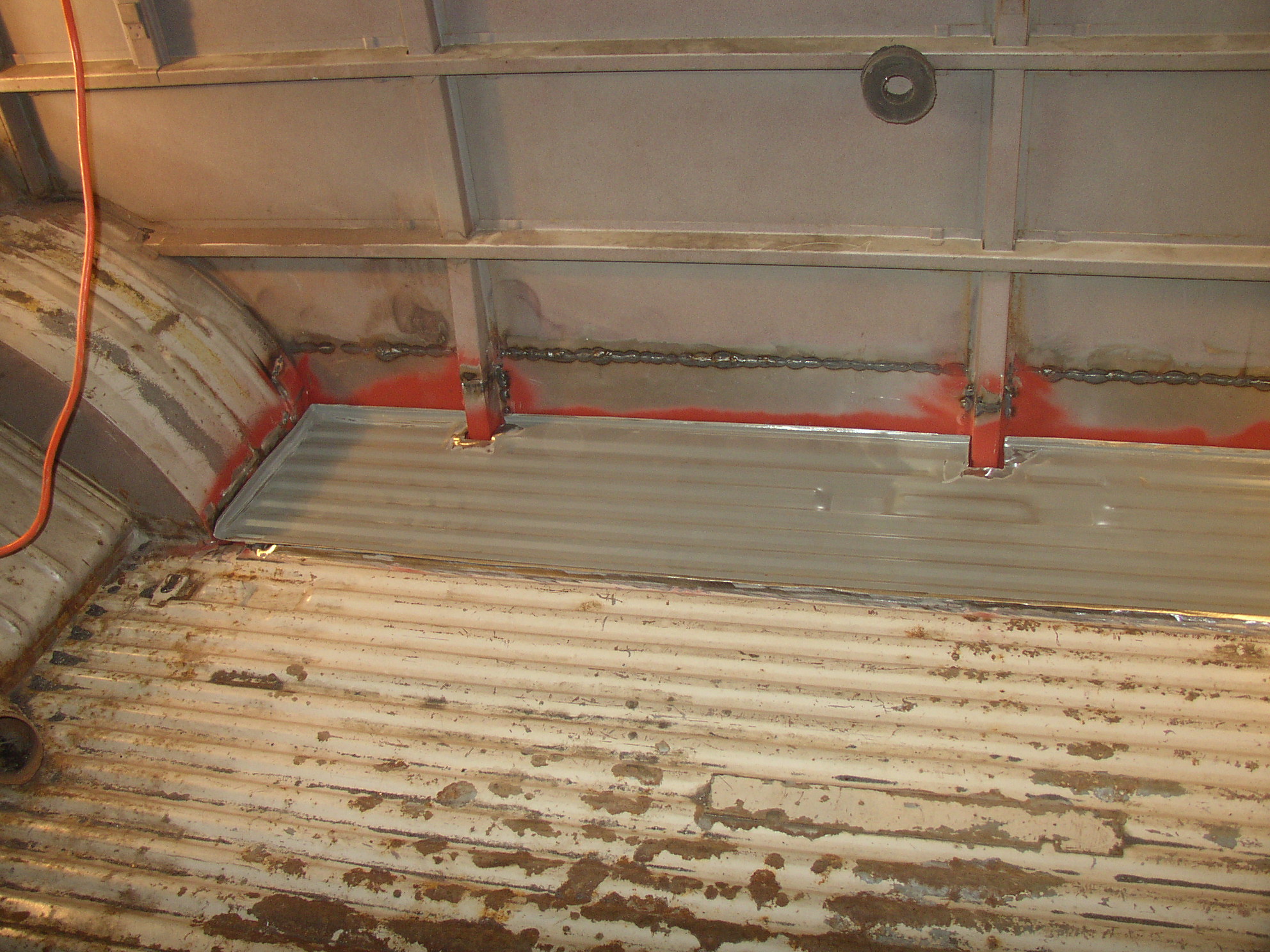 Here's the floor done with seat mount in, but I didn't have time to grind it out yet. Thankfully with the new Miller there's a lot less grinding.