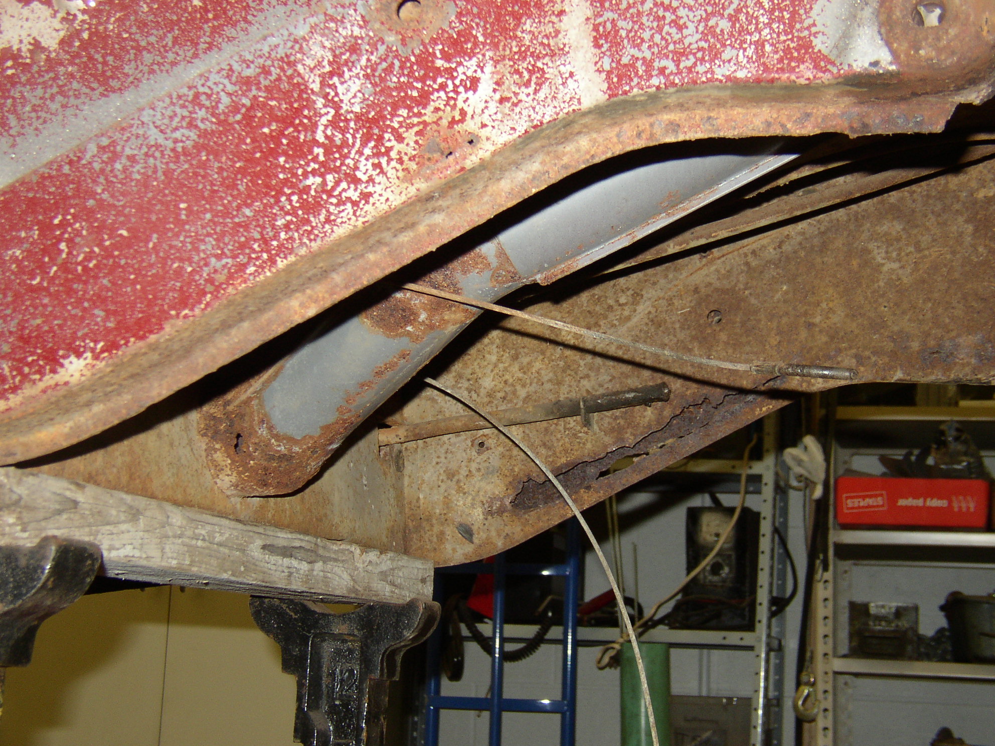 Next: The right rail "looks good" at a glance, but it's tissue paper. Gonna cut and splice it too, but probably behind the axle bolt flange so it should go easier. The left rail took about 5-6 hours to replace, which I thought was pretty good.