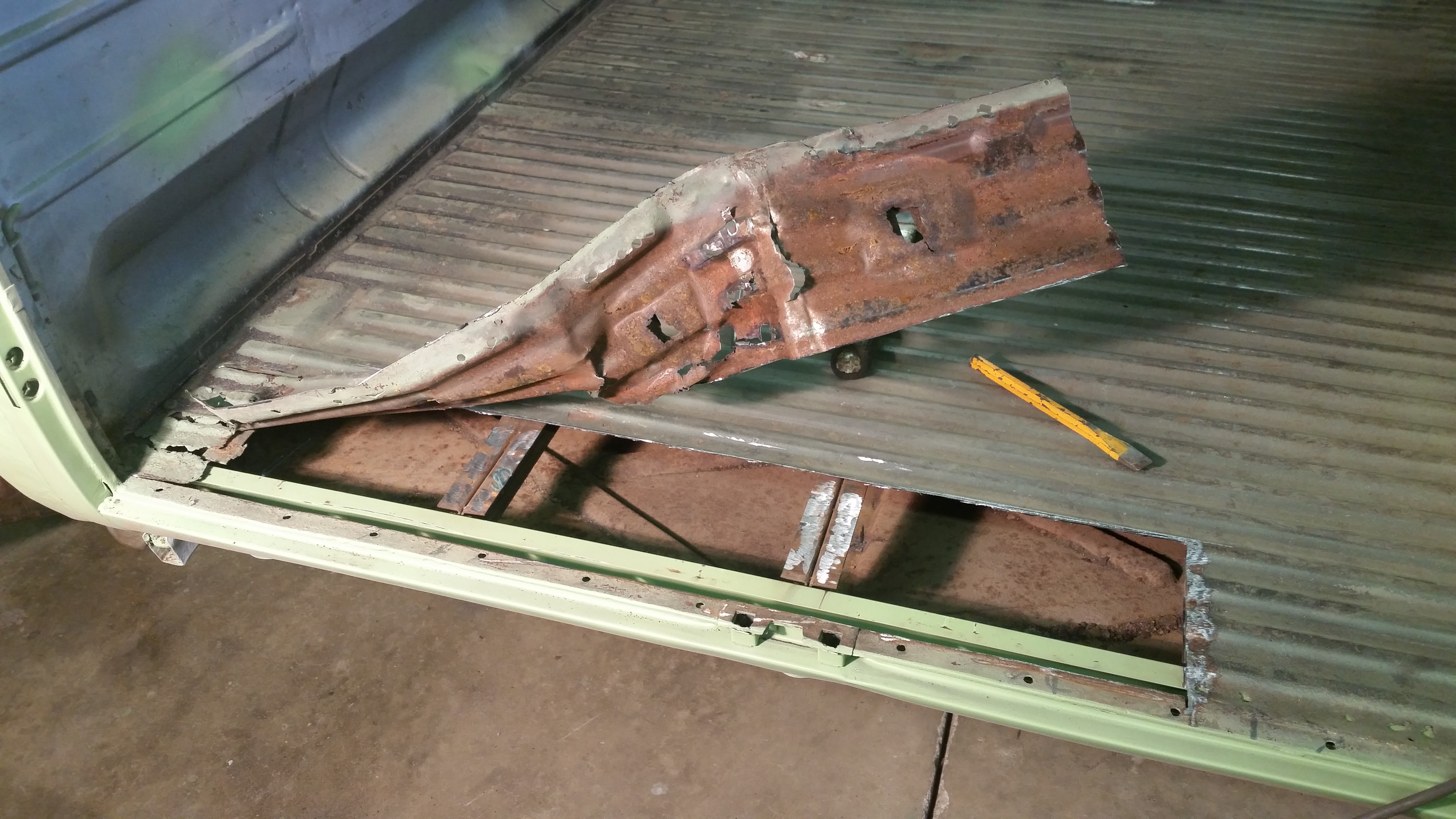 Cargo floor patched.... Most of the underside cleaned and painted...still more to go