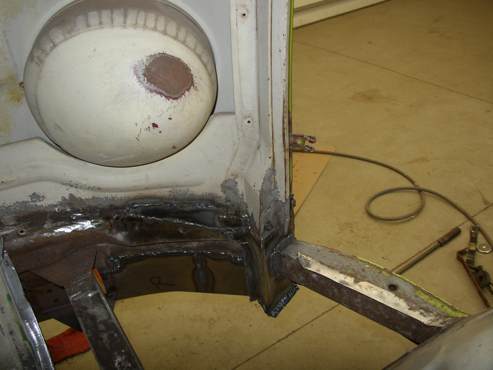 The left seat belt mount was a bit funky looking, but it wasn't until I cleaned it well did I find it was pretty rotted. Here's an old pic zoomed in, I didn't shoot any closeups prior to cutting it out.