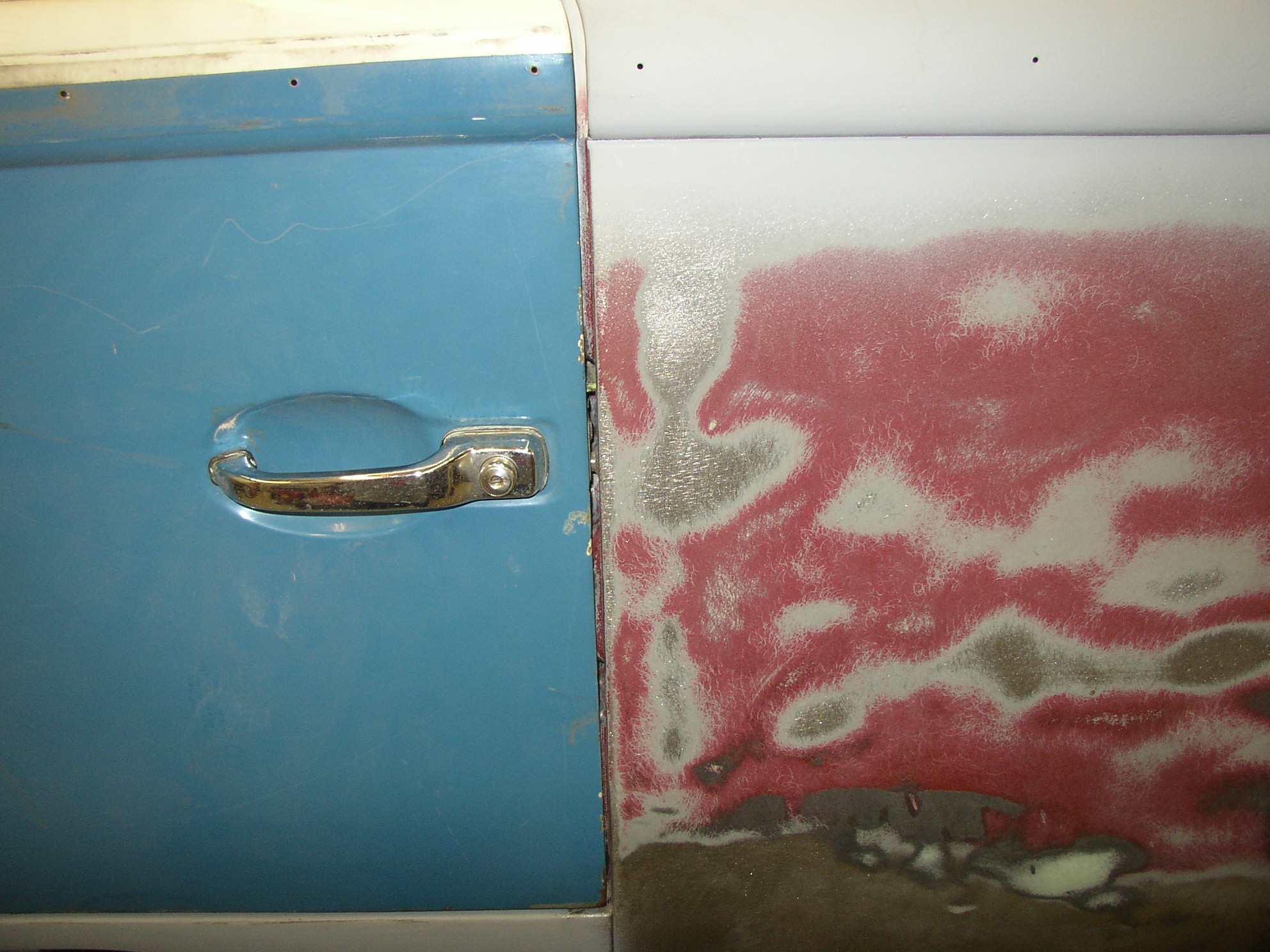 Well, my new door came in Greyhound and it's "pretty good" but not perfect. It has virtually no rust- some surface rust on the lower inside lip but not much, a wire wheel took it right off. It was hit in the lower center and has a spot of mud about 8” around in it, you can barely see the lines I drew with a pencil where the magnet showed mud. I wanted a 50 year old virgin, but I guess there's not many to be found.