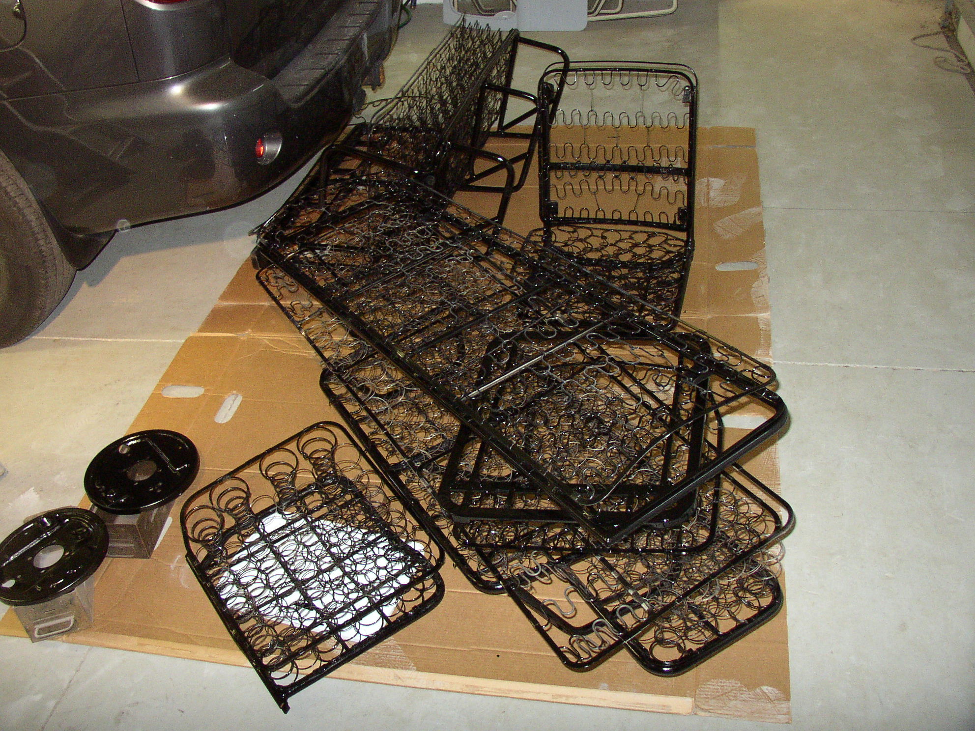 Then I cleaned, ground, sanded, and sandblasted the yech off the frames and shot them in black.
