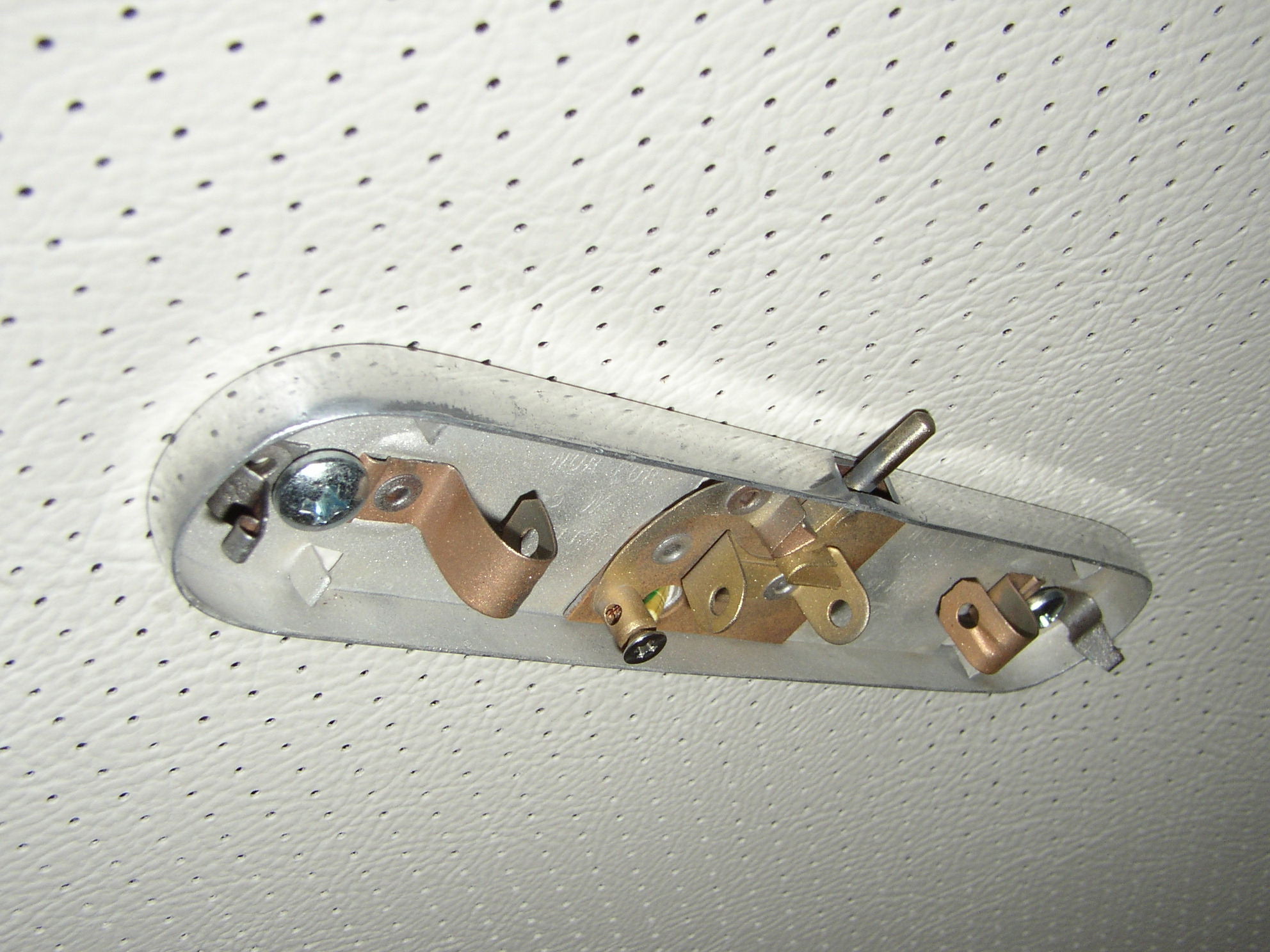 Next, interior lights. I bead blasted the inside, buffed the outsides, fixed the stupid little 3mm screws for the wire attachment, and installed them. Finding the mounting screw holes through the new headliner required a bit of patience.