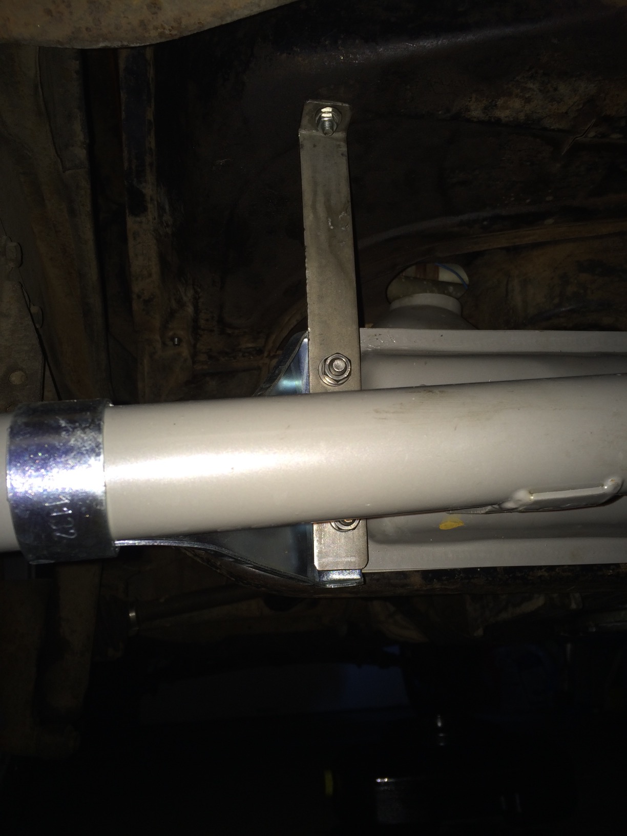 I worked on the engine this weekend, replaced the vacuum canister on the distributor, replaced and adjusted the points, replaced the spark plugs and plug wires. Replaced five of the studs for the oil drain plate. Waiting on a new metal fuel line to come in, currently it has a soft fuel line coming through the tin into the compartment. Repaired several wires to the coil, carb and alternator. Also replaced all the missing screws in the engine tin, it only had about half installed. I noticed that the large breastplate had trouble holding itself up level with the lip in the engine bay that the foam seal attaches to. At first I thought maybe the foam seal helps hold it up but that would still put a lot of stress on the tin and there is some stress cracking evident from years of flopping around. I found some additional holes that must have had brackets going to them and they lined up with the corners of the muffler. Searching online I could not find any photos online to confirm the actual existence of the brackets. At any rate I fabricated some simple brackets, used the tailpipe bracket bolt holding slots to attach them too and it seems to work well. My guess is when they made the muffler they did not reinstall the original brackets as the homemade muffler had nowhere to attach them too.