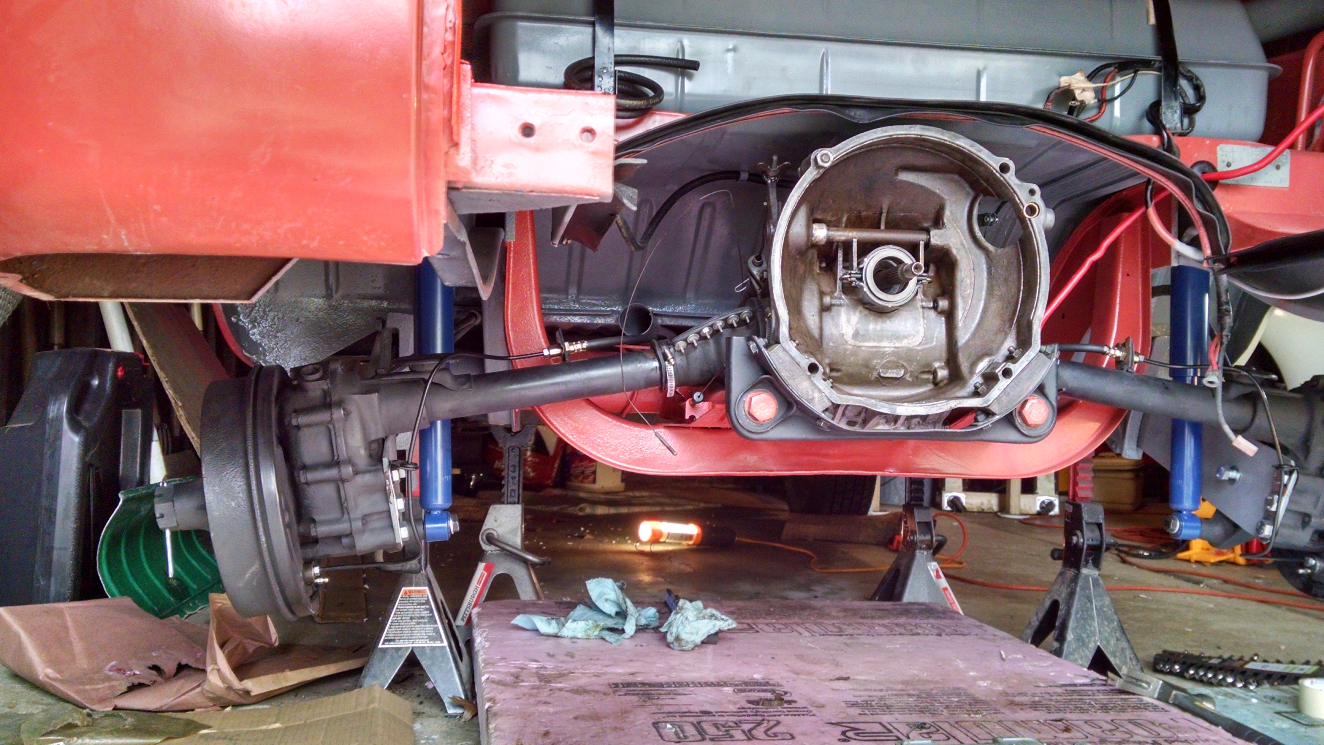 The rear end work is complete. All of the cleaning, prep and paint, big nut conversion, rebuilt RGBs, brakes, brake lines, gas tank and 12v electrical conversion is done. I have a few odds and ends to take care of, but most importantly, he is finally ready for the new engine installation.