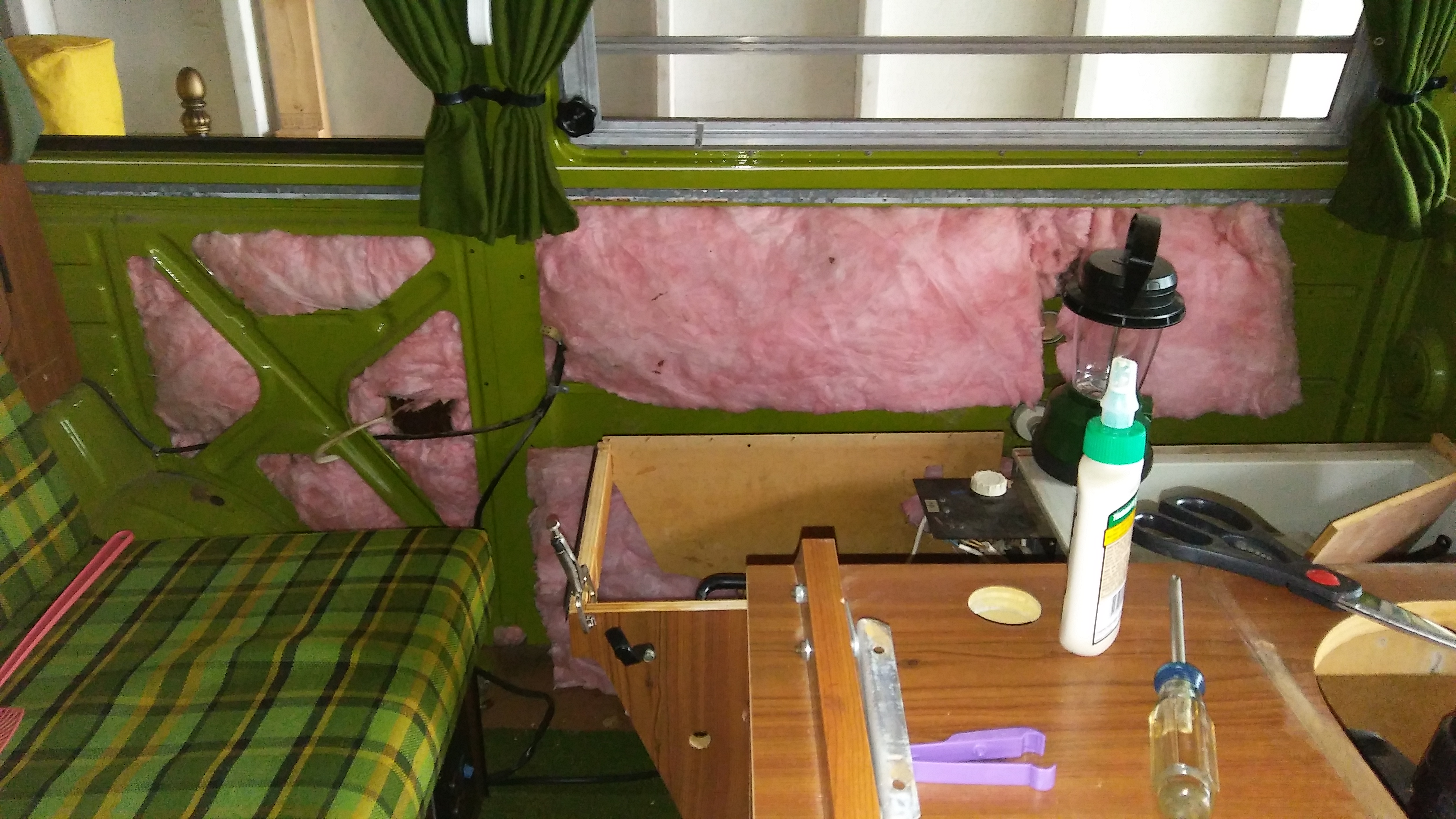 I wish! Still won't have the panels until tomorrow. Then gotta figure out how reassemble all this mess (replacing water pump, hardware, and some plumbing too). Then get started with removing both bumpers and propane tank. Sending those off to the painters for a fresh coat of white. Then replacing the brakes all around. Still have so much to do. Maybe I'll have my "Honey Do" list of things done by spring.Marla wrote:Looks like you will be nice and toasty in that bus... Going to do some winter camping?
