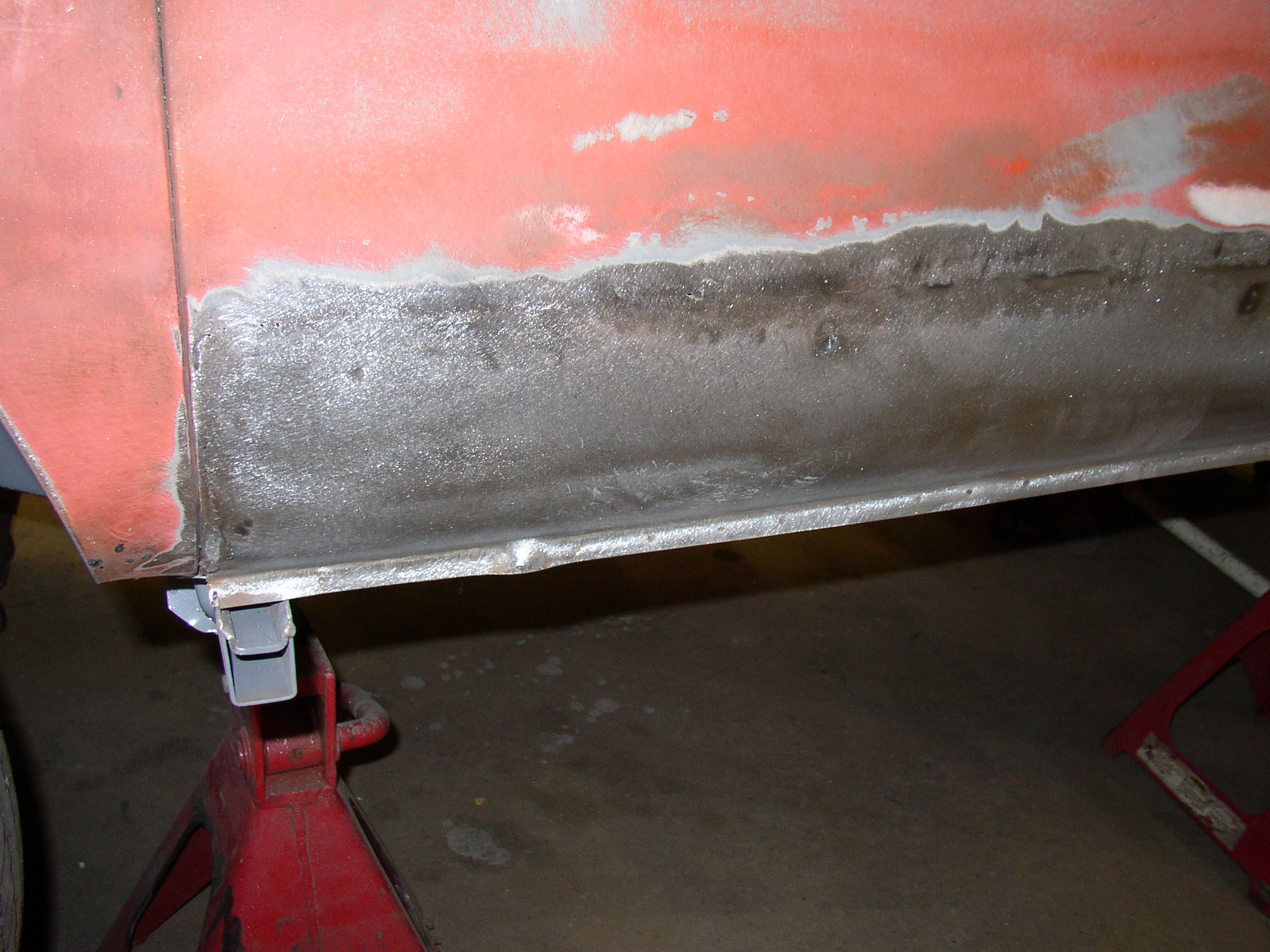 No sweat, grind it down, weld the holes up, grind it out, and work it smooth with a body hammer. I'll get a hinge from WW on my next order. And fill in the pits with "páte". This process is going to be repeated repeatedly.