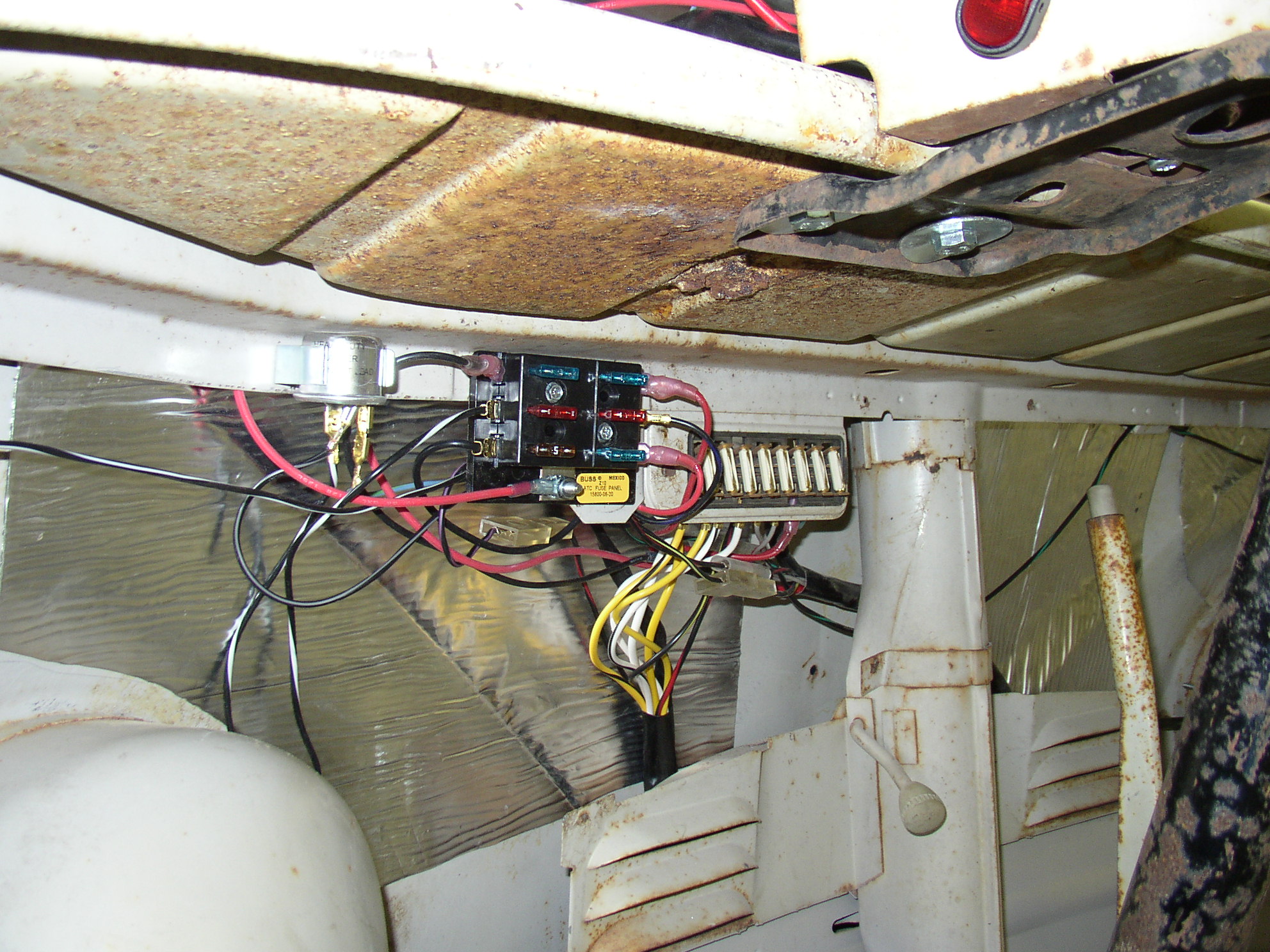 Electrical is done, here's what the dash looks like. Typical of me is putting in an extra fusebox so loads are spread out, this is easier on the wiring as well as making diagnostics easier if it blows a fuse.