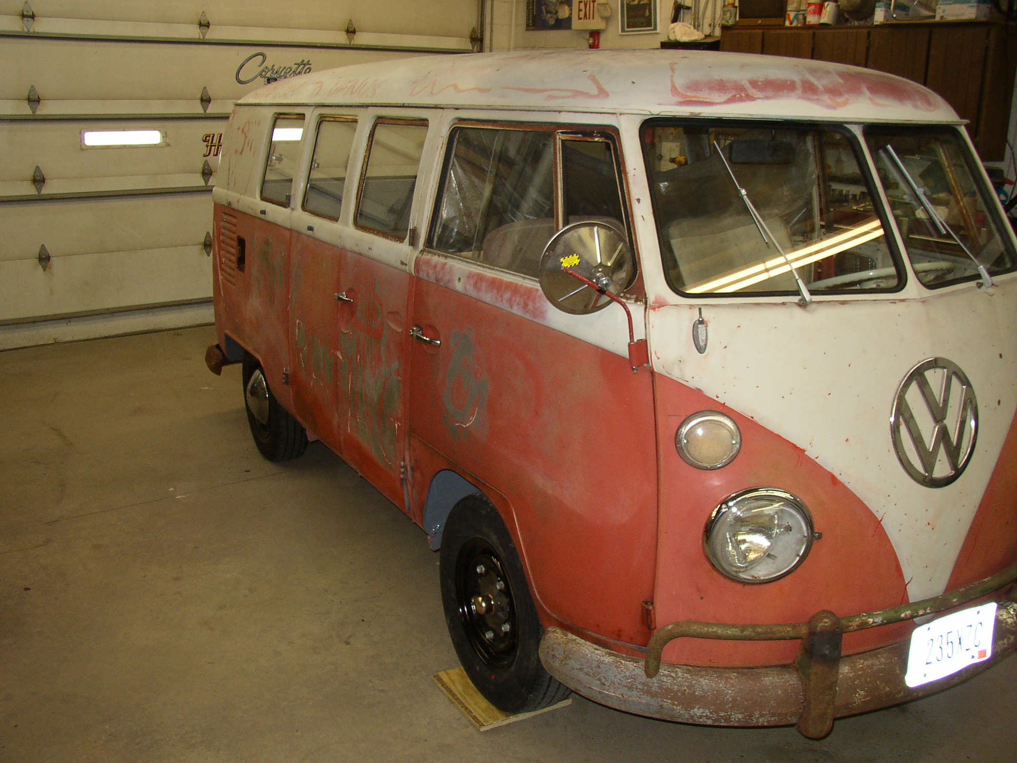 Turn the left tie rod sleeve (the right isn't adjustable unless someone swapped tierods), mine took some heat to free up. I started with about 1/2" of toe-in. Camber and caster are non adjustable on older VW's. If you don't have turntables you have to roll the bus back and forth each time to settle the suspension. Once the toe is set, drop the drag link and turn it to level your steering wheel. I have about 100 miles on it now, it really drives much better than I expected- motor, trans, suspension are all great, I put 10w30 oil in it for the winter. Not as much rattling as I expected from the doors, either.