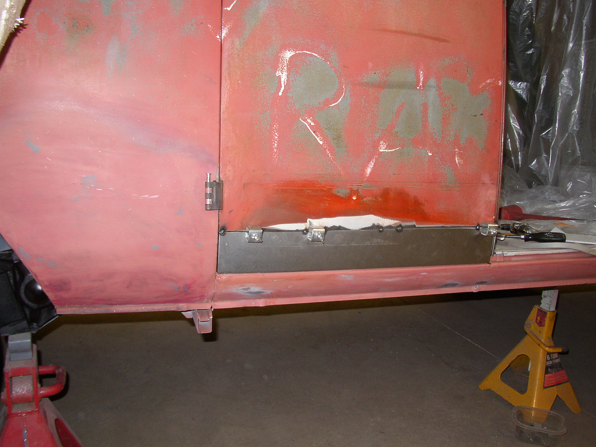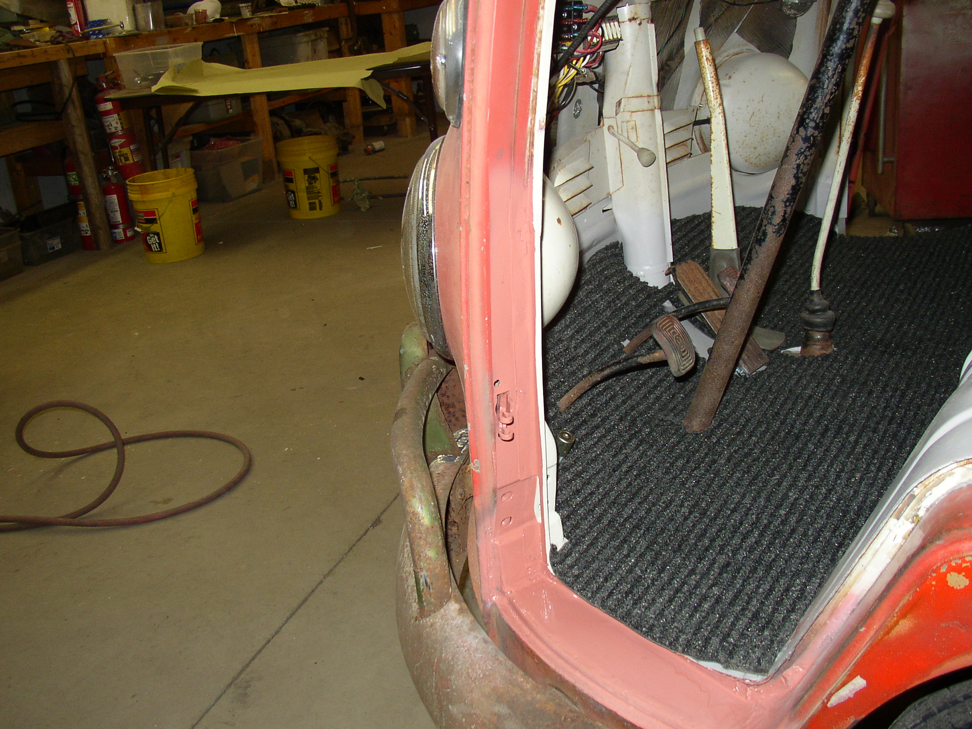 Go to put the driver's door on and realize I hadn't looked at it in nearly 2 years. I had forgotten it was hit near the handle, putting a good "V" not only in the outer skin but also the inner structure. Strip it to a bare shell, I didn't take a "before" picture, but spent an afternoon with a BFH and blocks of wood making it straight again. Even the latch was bent, but I was able to straighten it too. The outer door handle wouldn't work prior to straightening due to geometry problems, afterward it worked fine. Funny how stuff like this eats up a bunch of time, much more than you'd anticipate or estimate. Good thing I'm not doing this job on a quote or flat rate.