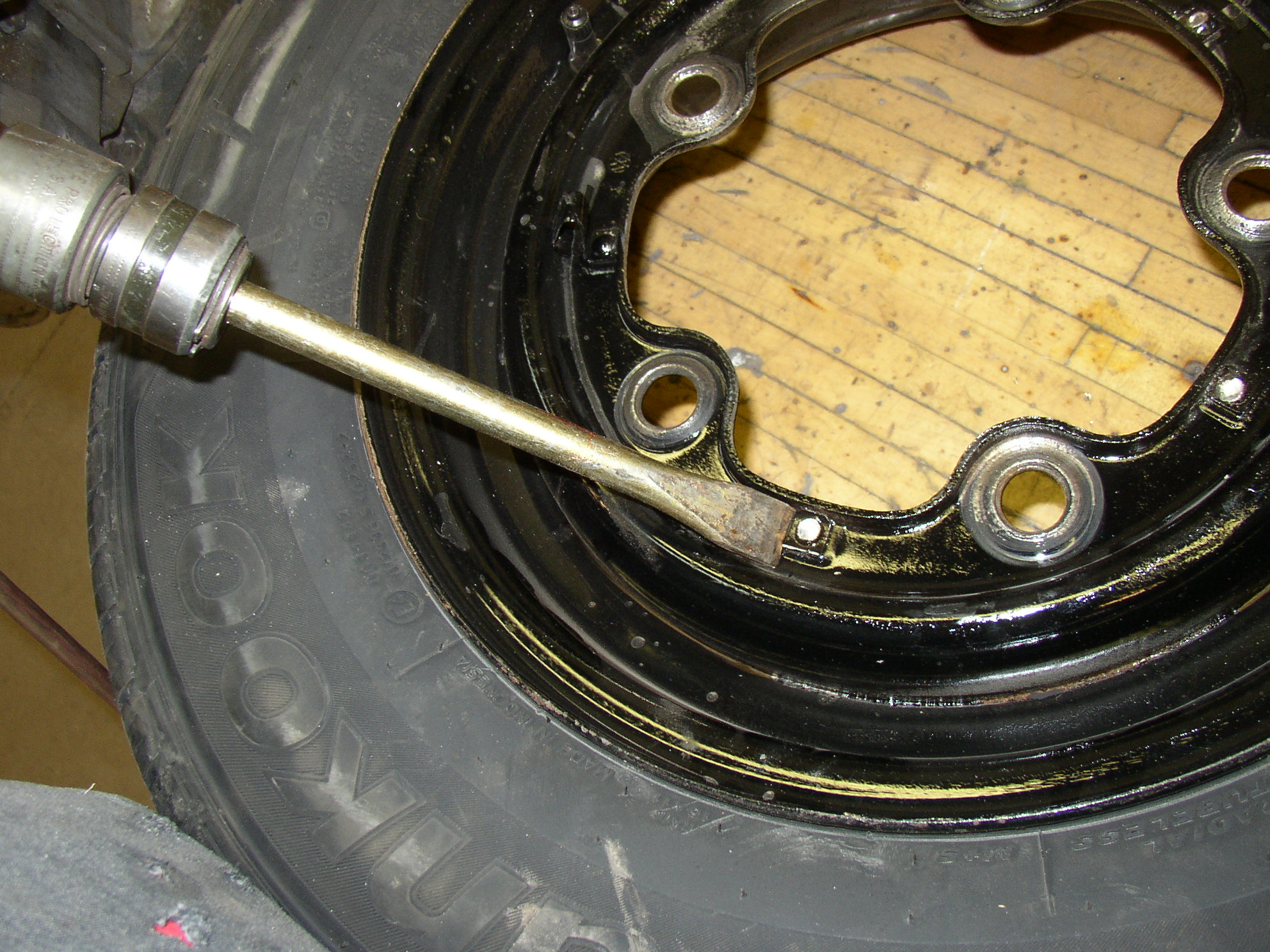 I just got that hubcap clip rivet tool -- haven't used it yet. I think it's weird that they sell the tool to hold the rivet/clip, but you still have to cobble together a bunch of stuff to hold the wheel in place.
