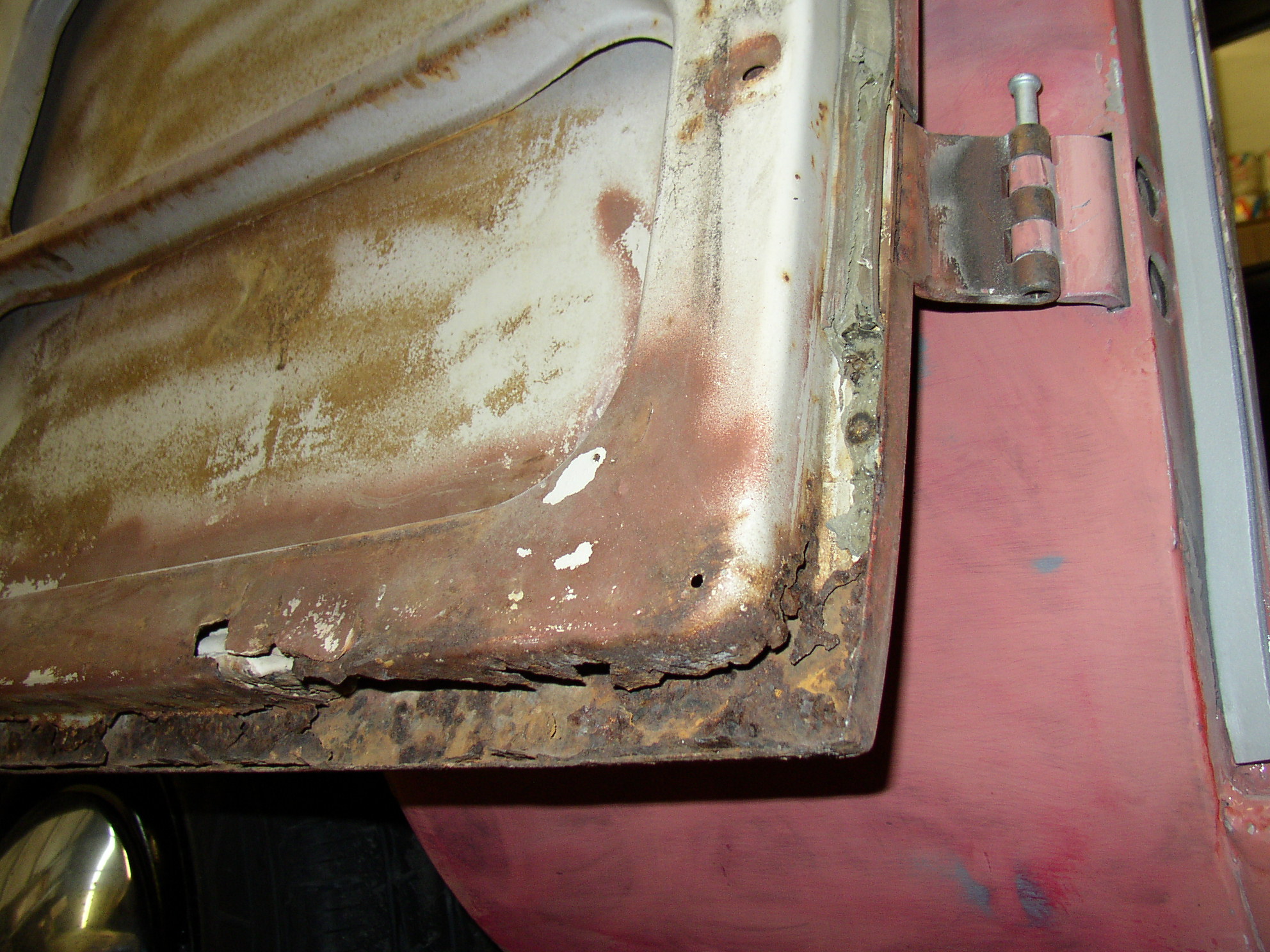 The weather's too sloppy to drive, might as well attack the cargo door bottoms. At a glance from the outside they don't look too bad.... Until you look closer....