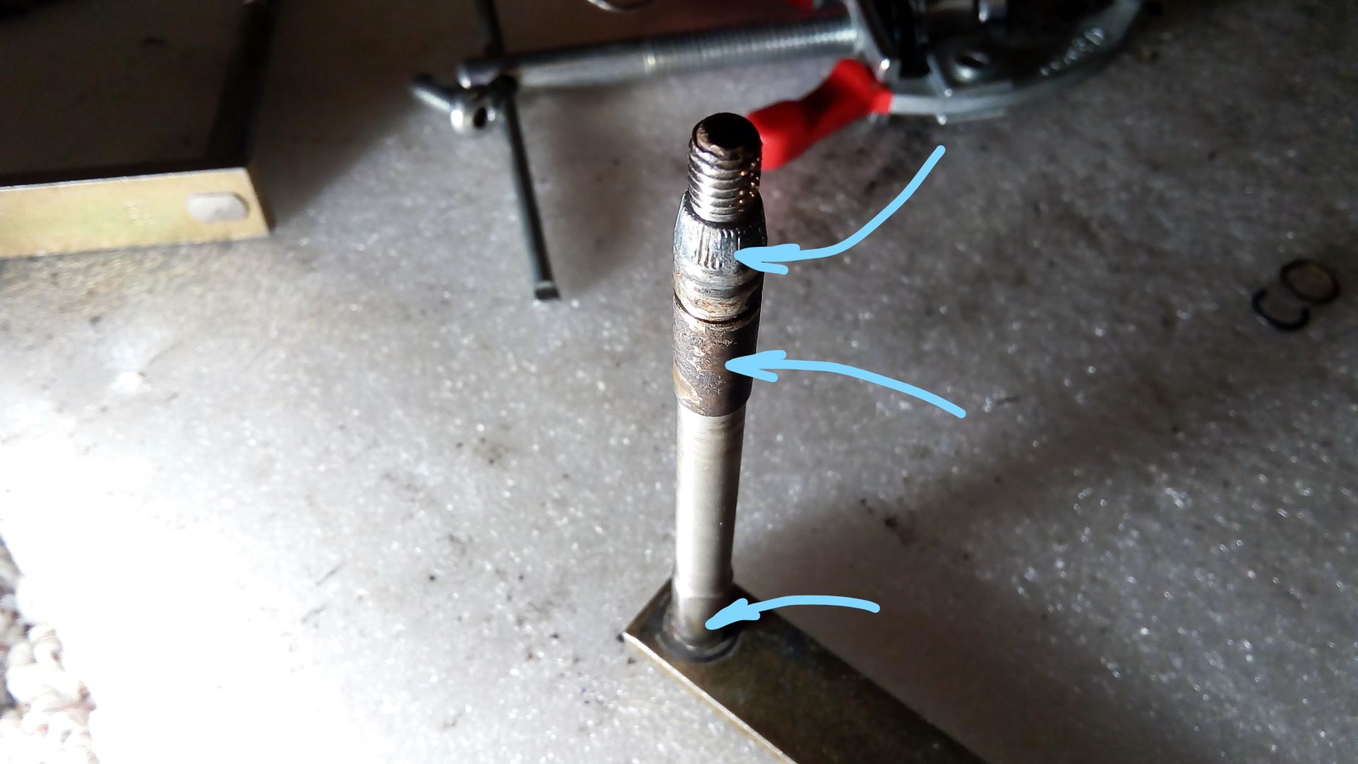 Notice the worn out splines below the threads; and the rusty area below the clip groove is actually slightly recessed from wear