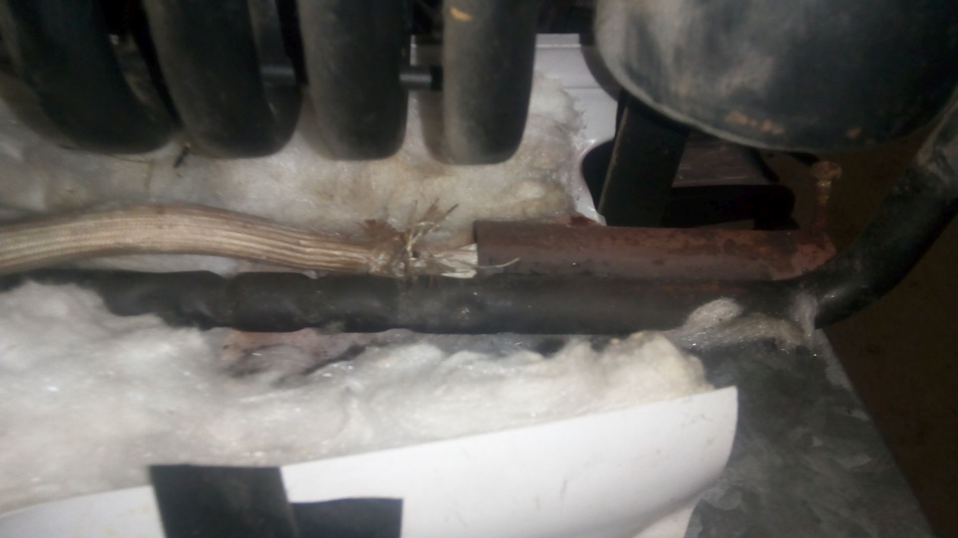 this is how the heating element wire was routed by the PO, so I reinstalled it the same way: inside the insulation sleeve, along the piping hot line. the wires could melt and cause a fire.. so I pulled out the heating element and installed the other way - with the wires opposite to the lines, and not touching a thing after an hour, dial on max setting: condenser is super cold and there is a film of ice on the side of it after two hours, temperature of the inner walls is 32 Verdict: overall I am pleasantly surprised by how fast this little fridge starts cooling; I think that with intermittent battery use, and with a bag of ice in it, it will work just fine for a few days of camping. And with shore power it's great.