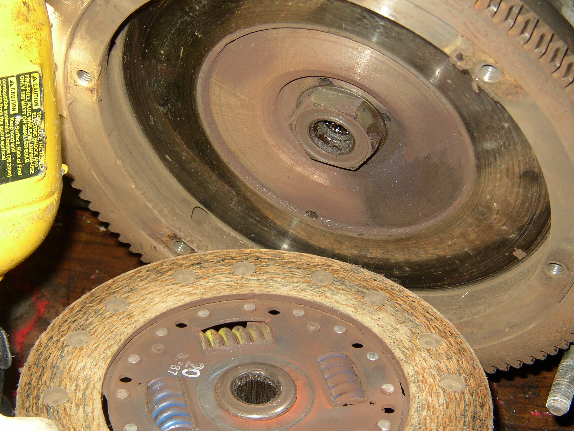 I took a look at the clutch, and it's a good thing I did. It had the wrong disc in it, which had the wrong offset and rubbing hard on the gland nut. This would have caused dragging (failure to release properly) and difficult shifting. In research I think it's a Rabbit disc. The throwout bearing sounded rough and dry so it got a new dampened clutch disc and throwout bearing. The pressure plate is a nice German one so I reused that.