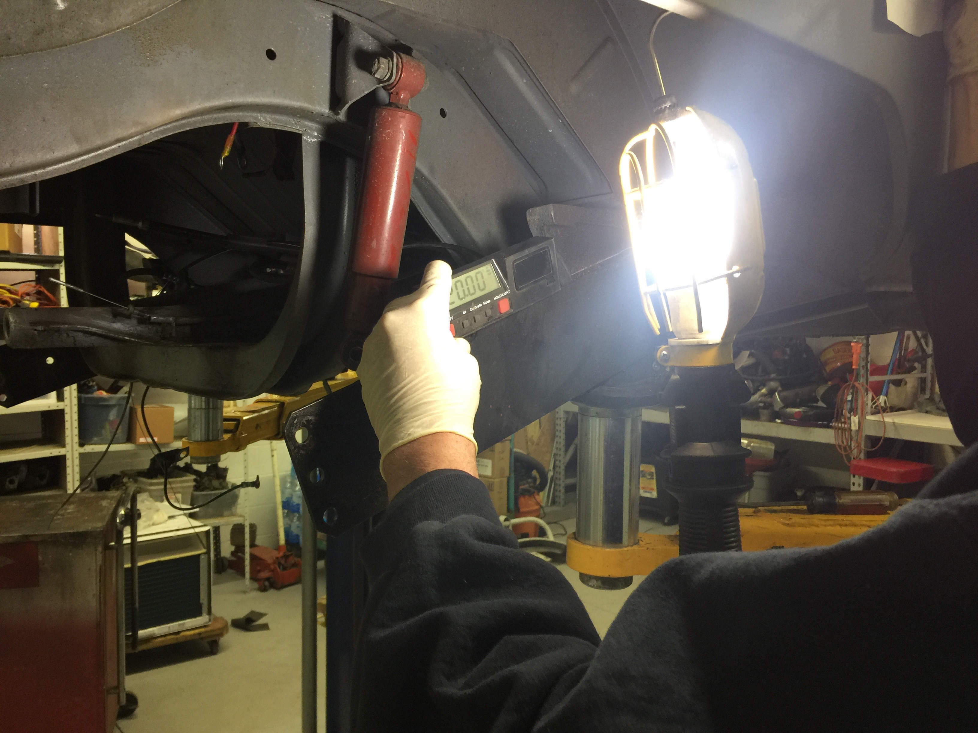 It was a great lessson. We got the new tank in and although it went in like butter, the replacement tank has the fuel outlet about 2 inches off the original, but no big deal. Bruce hooked me up with some great rubberized support for tank and straps. Got the tranny in with Bruce using the Big M*&%$#( channel locks to pull tranny and mount together. We got the spring plates lined up with RGB's using C clamp and persuasion. Good lesson for me. Everything bolted in.