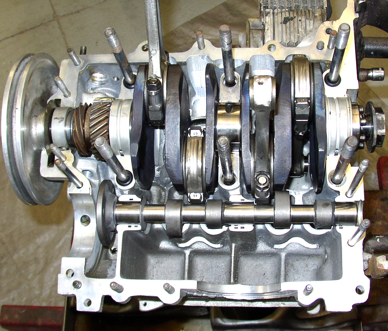 I checked the mains and rods and they look like new but they're Kolbenschmidt bearings. Unfortunately they're not easy to find so it got Silverline cam bearings which show some wear. I'm not sure if this is from low quality bearings or the journal surface on the cam was not perfect but it's not a big deal. I'll replace them and polish the new cam journals with 1000-2000 grit to a mirror surface.