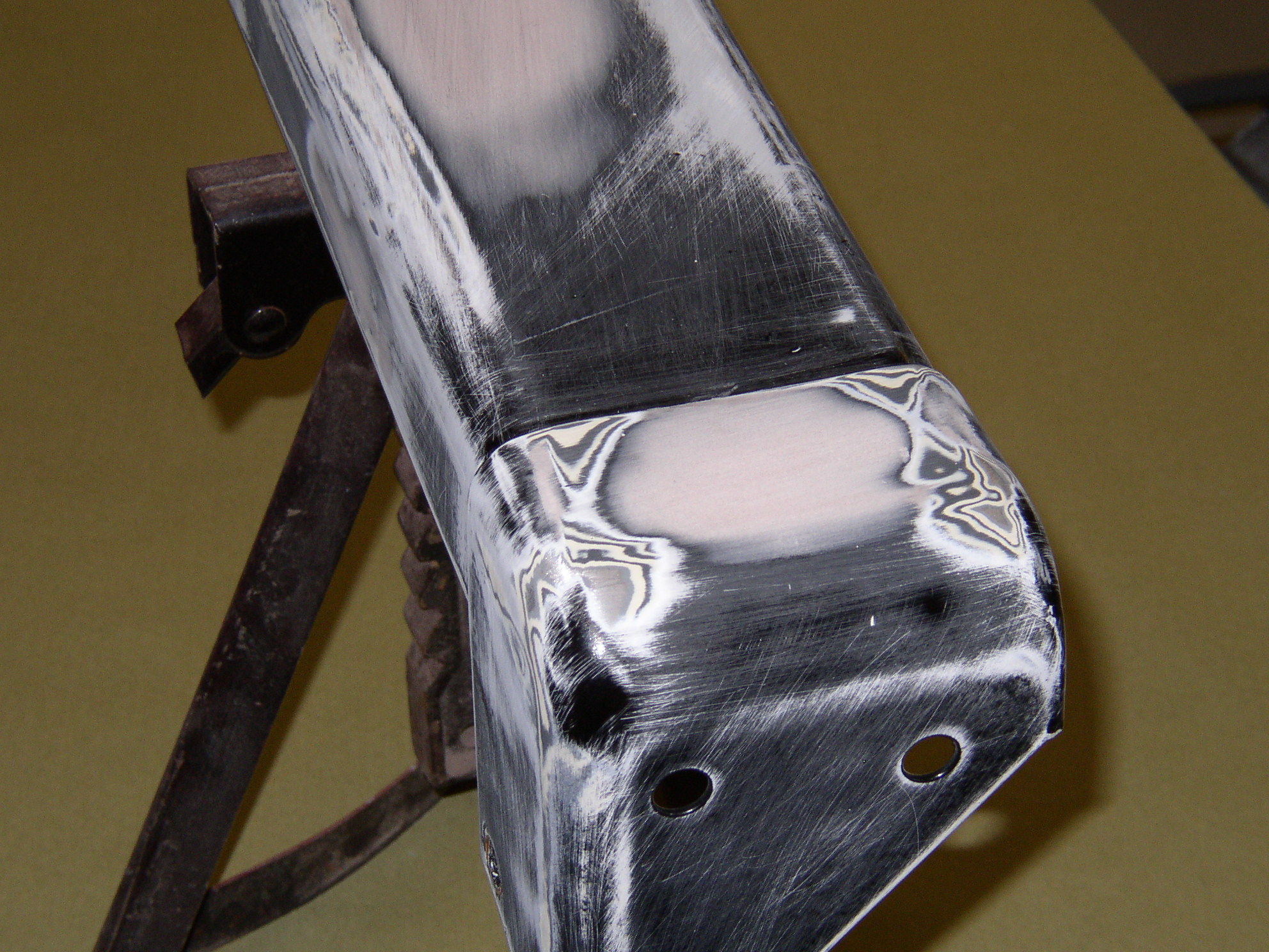 I filled in some low spots and electric weld divots to make them smooth. Note how many layers of paint there are!
