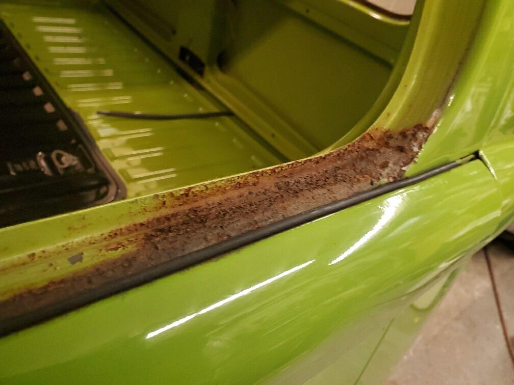 Finally got around to putting in new sliding rear windows. Rather had new windows put in. I was afraid there was some rust in the channels so found a body shop through the Cincinnati VW Club that was up to the task. I took out the rear cabinetry and took it over. Turns out there was rust in the left side rear and rear hatch. Right side was okay.