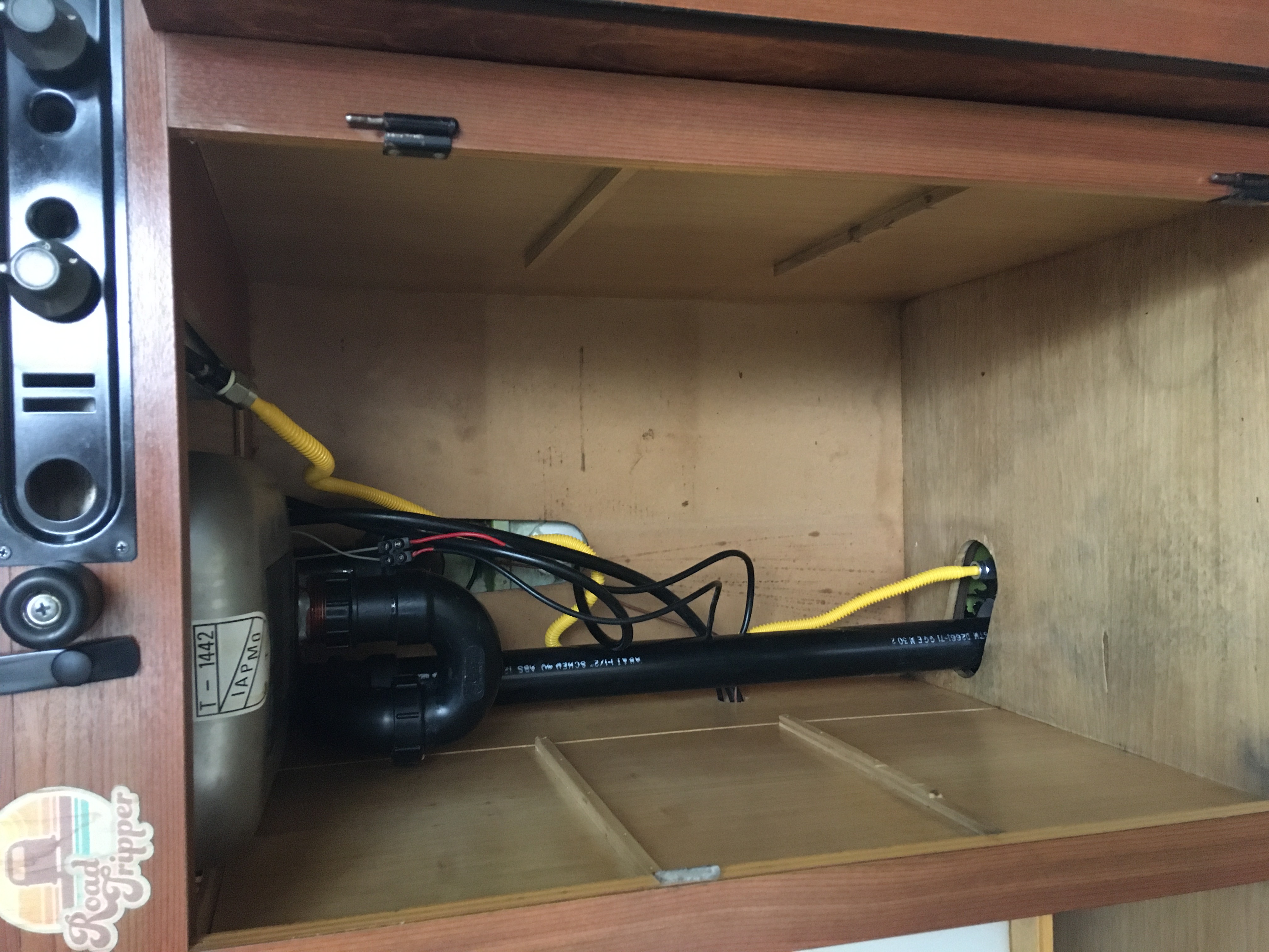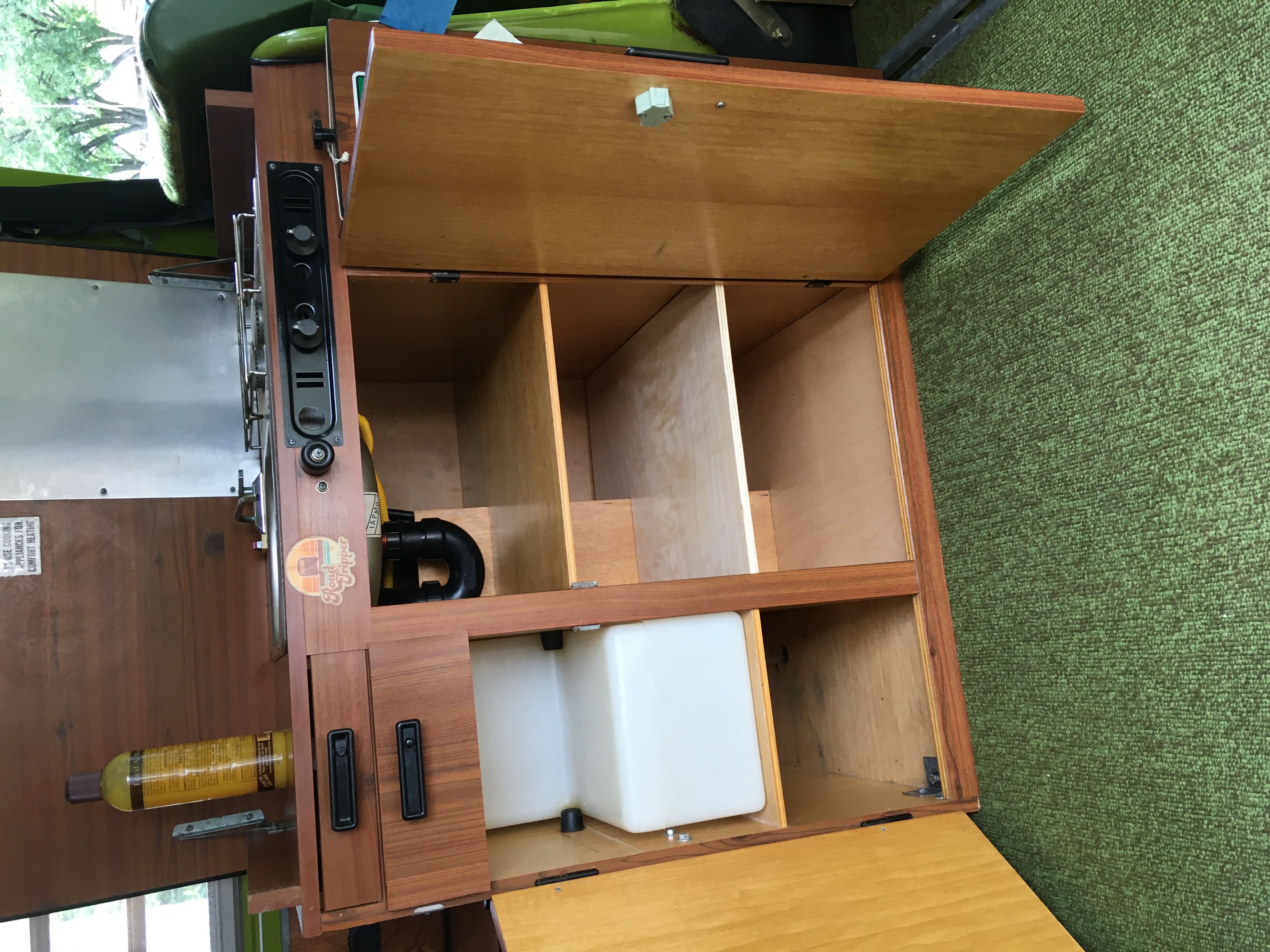 Put the main cabinet back in and replaced the main gas line while I had it out. Was able to get it at Home Depot. The original had 3/8 connectors as was 48” long. Most everyone else only had the 1/2 connectors. Resealed with the yellow Teflon tape and checked for leaks. No bubbles! Also cleaned and varnished the inside of the cabinets. Made a new shelf, one of the ordinal was pretty stained and beat up and made a new very thin bottom panel to cover the stains. I did RE varnish the entire inside including Masonite panel front and back. Also sanded varnished the underneath of the cabinet, no pictures of that. All this should give it some resistance to water.