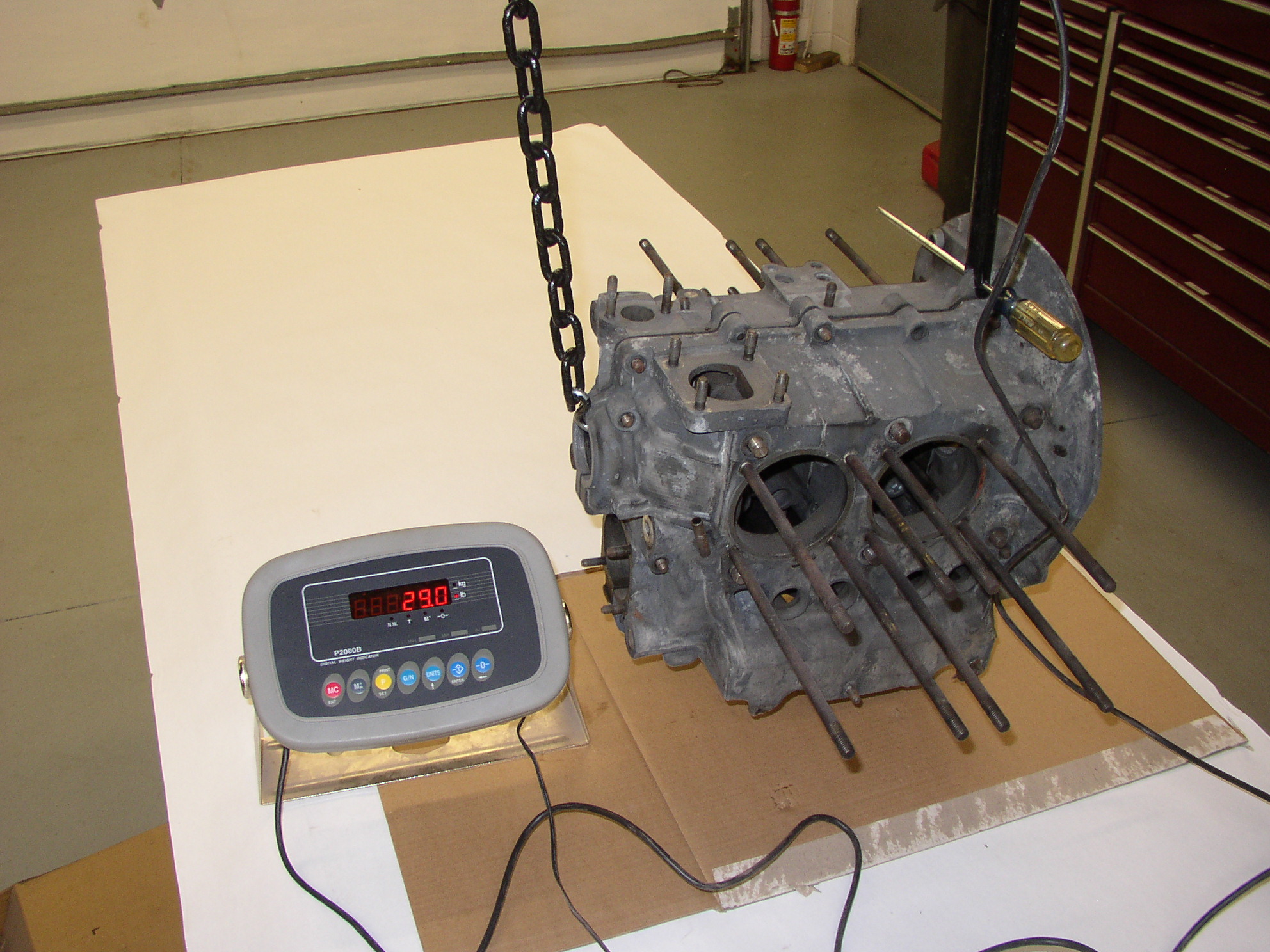A fully trimmed engine is about 240 lbs. The reason I have a scale like this is for my cutaway diesel engines with a 3000lb limit, I know it's accurate because if I hang on the cable it shows my weight, 220lbs.