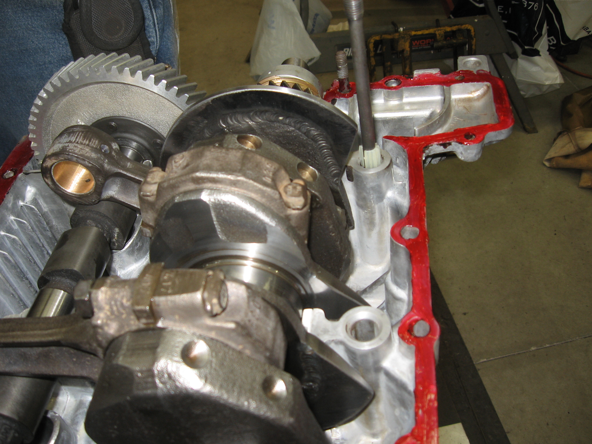 Smear some white grease on the gears. This helps cushion and lube things up until we get oil pressure when we first crank it over.