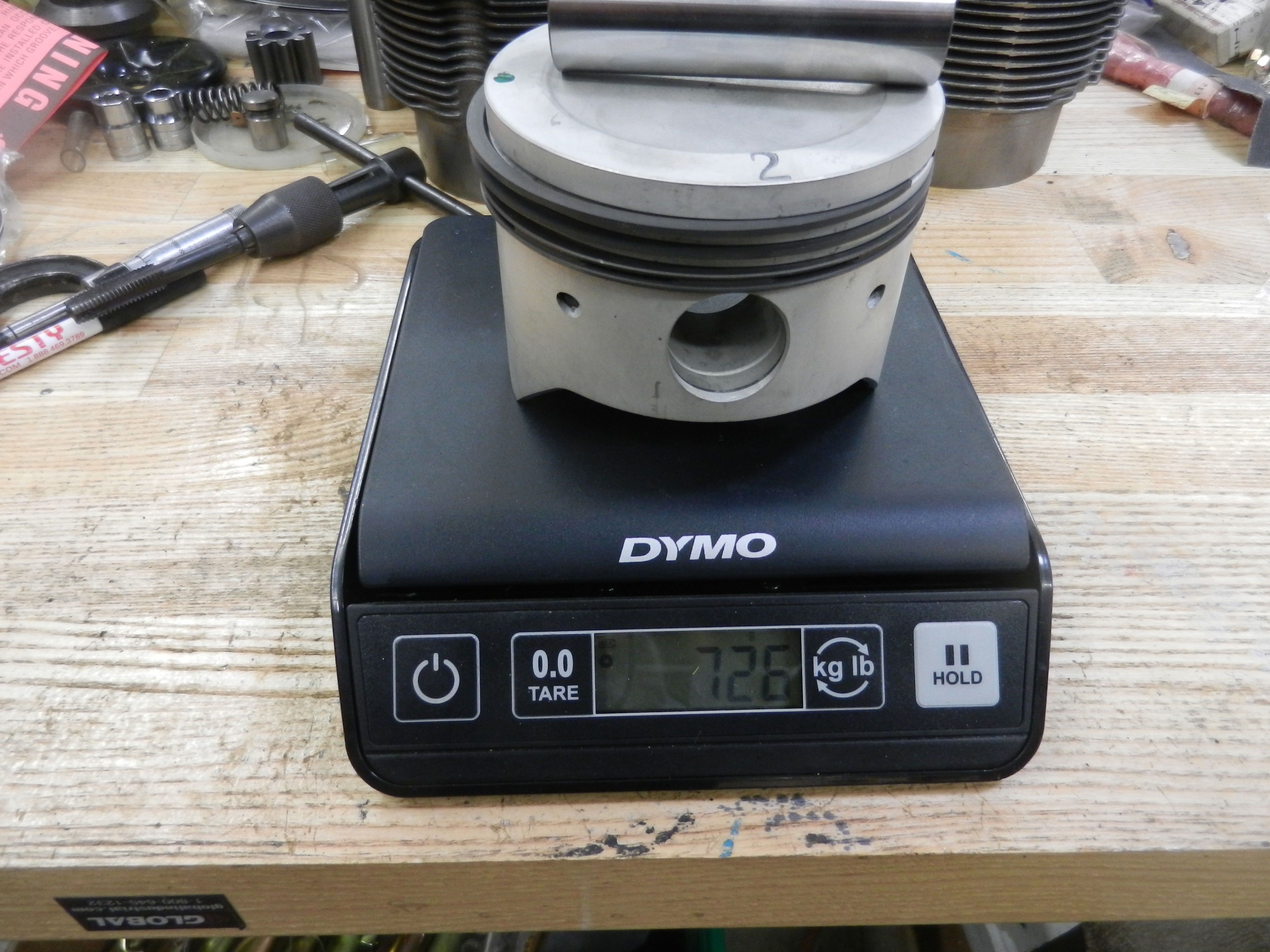 First thing, we are going to weigh them. Past experience with the NPR pistons, sadly no longer available, is that they are within 1 gram of each other. This held true for this set all 4 at 726 grams.
