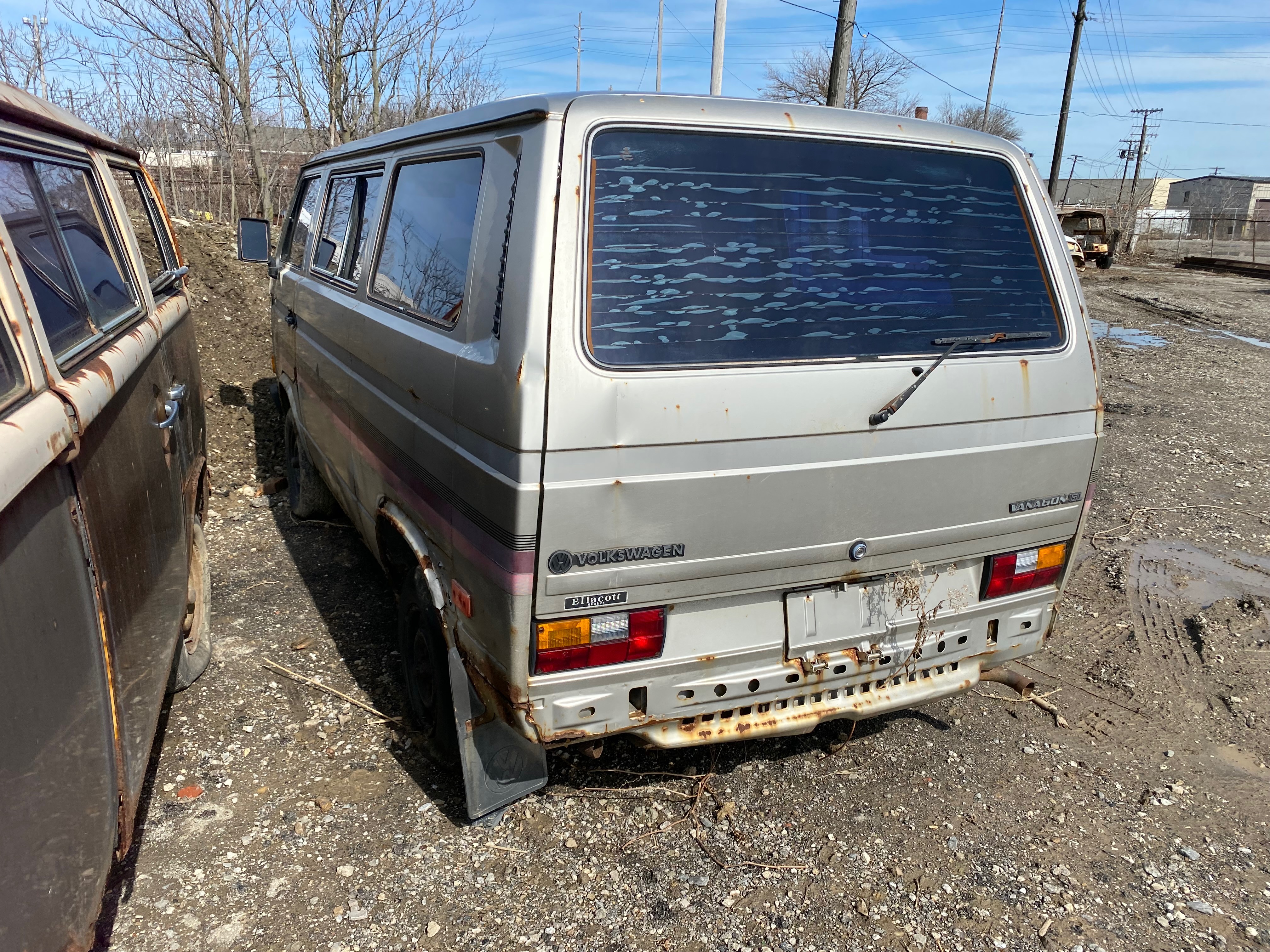Here are more spcific photos. By my count there are 9 Vanagons; 4 and 1/2 bay buses and 3 beetles as well as a number of Rabbit convertables and a Fox and a few other water cooed VW;s. Also the occasional Honda and of course the glorified Mustang !!.