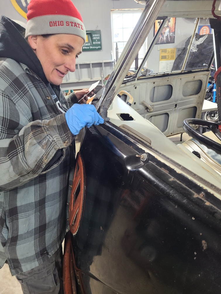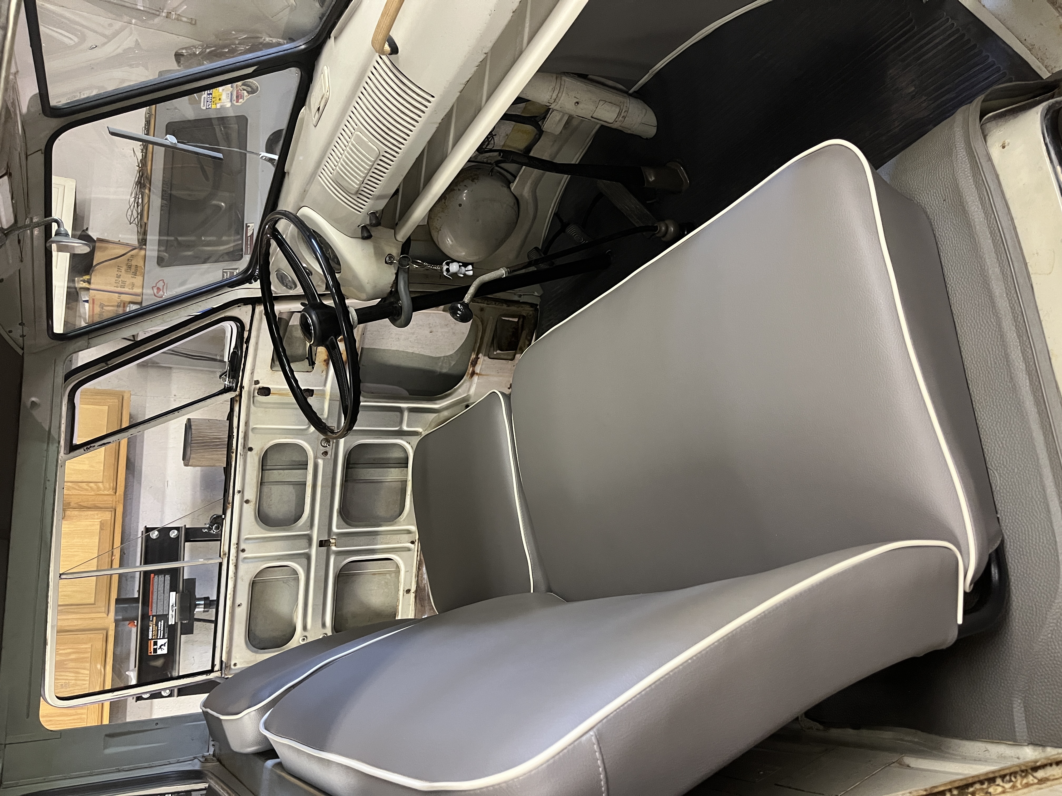 Interior is mostly back together. Brand new seat covers that look and feel amazing. All windows are in place and working. Gear oil leak repaired. Hammered out the rear corner creases. Worked on the battery tray, dry fitted and ready for welding. Looking at how to secure the gas tank in place.