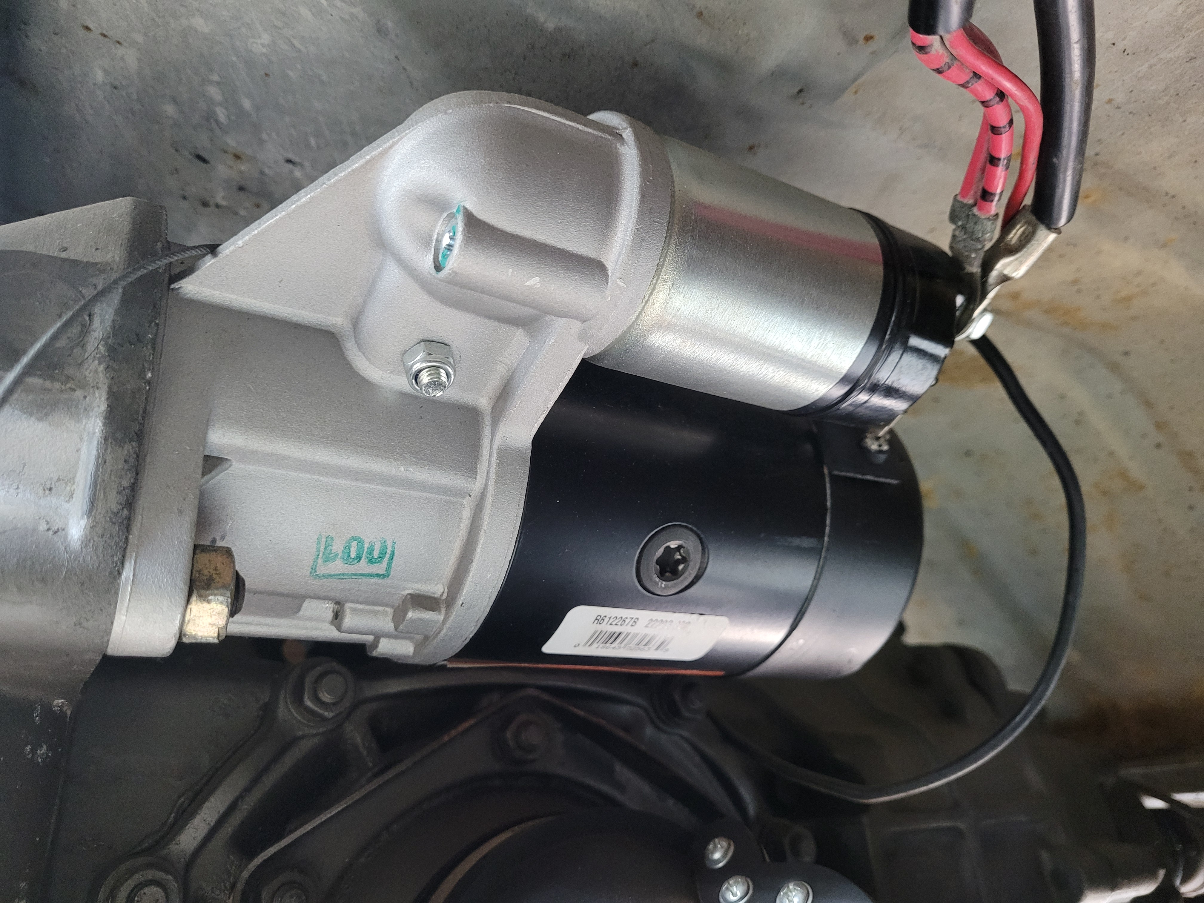 Starter is a new autostick unit, keep that in mind if ever replaced, it will need the same thing or an adapter bushing.