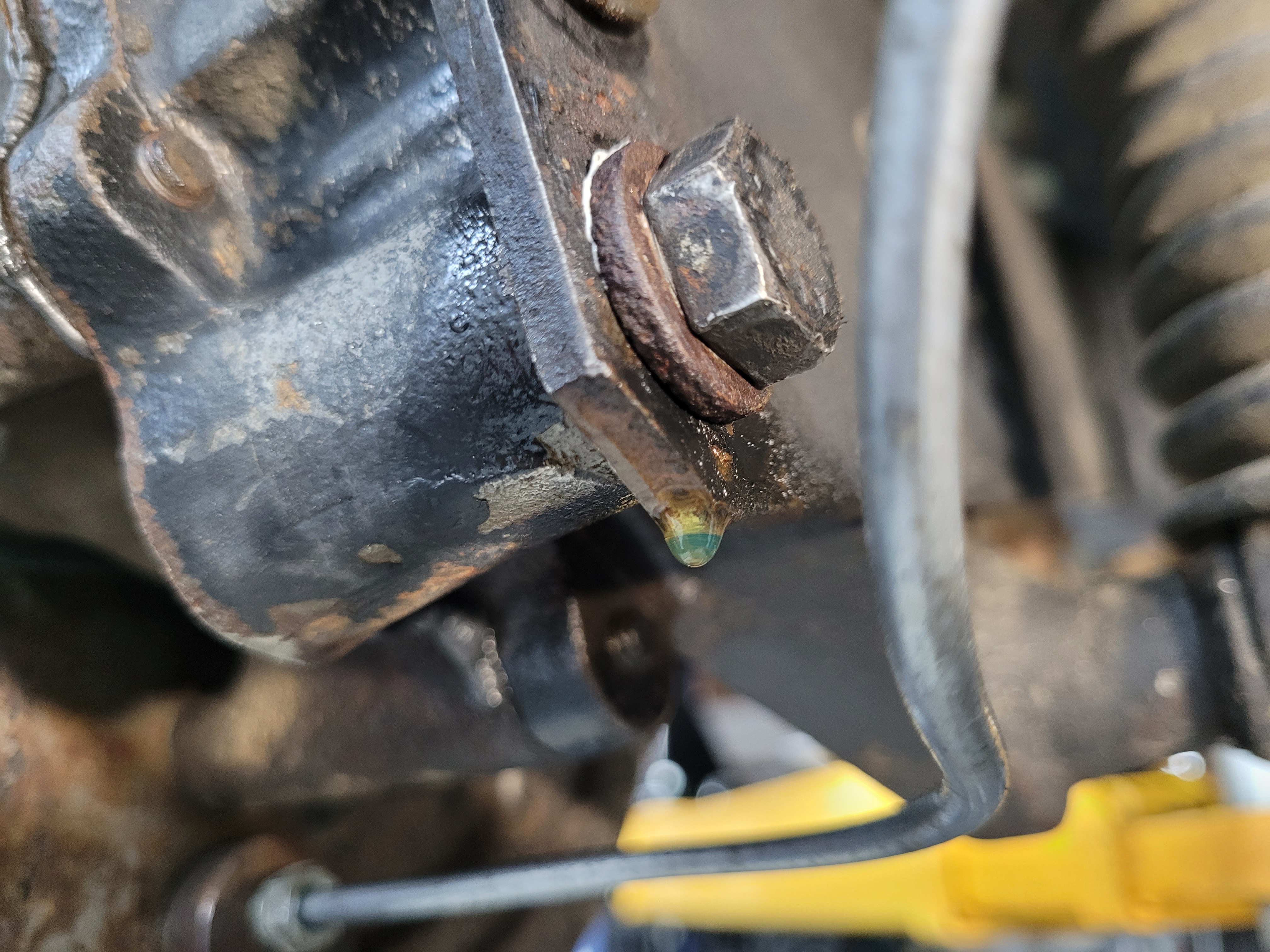 The left RGB was leaking pretty badly- leaving a 4-6" puddle when parked, it was the big freeze plug for accessing the inner wheel bearing that was leaking.