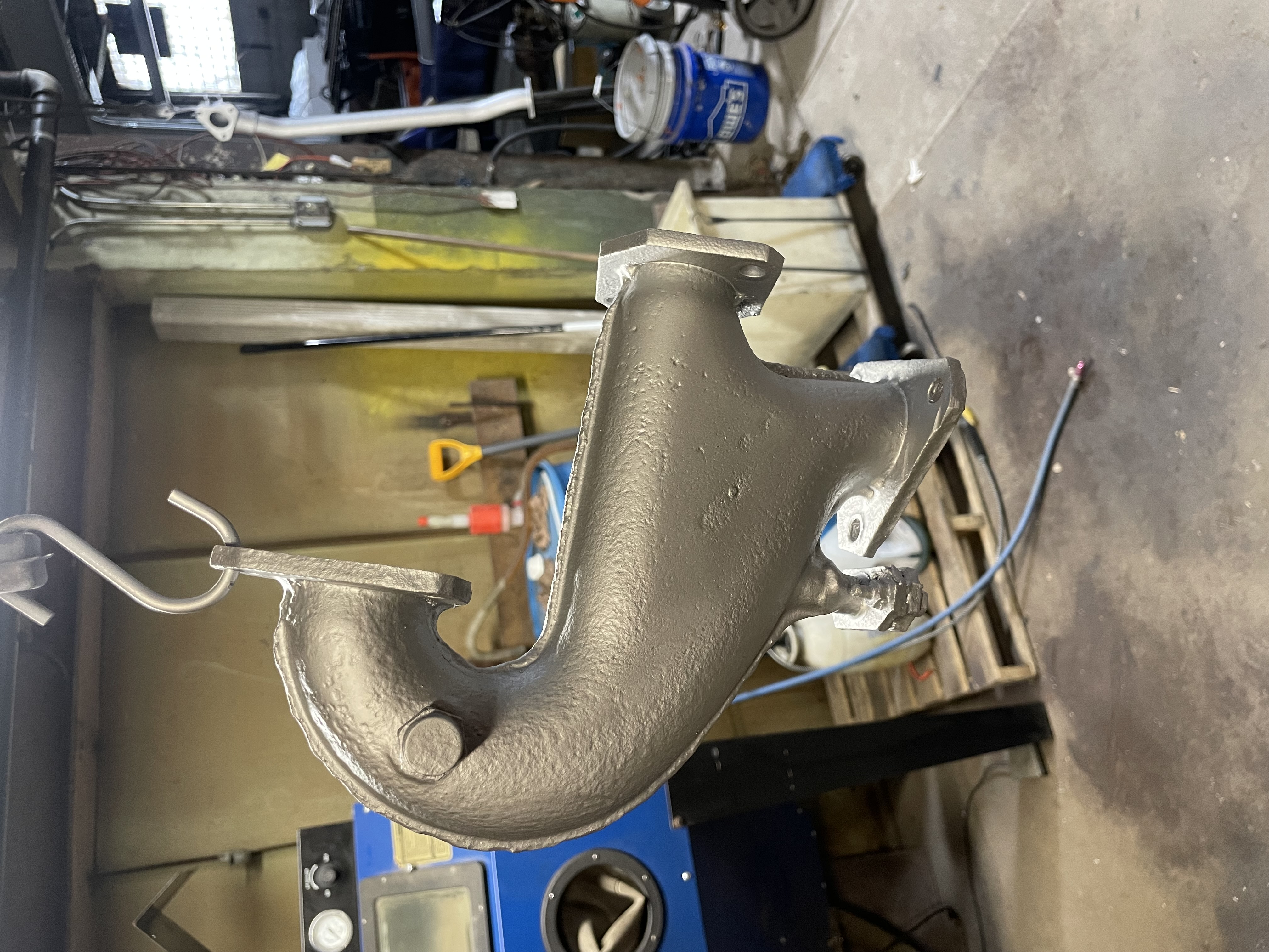 One of the next project in the pipeline is reinstalling a stock exhaust and hooking the heat back up. Currently there are some possibly custom made heater box delete pipes. A local $2 bill wielding friend had some correct N/A Late bay exhaust parts. I have been sandblasting and painting them up. I also ordered some gaskets and a few other things from Leakoil member Mick at Crooked River Auto Parts. Give Mick a call for parts. He has great prices and was able to track down a few odd ball parts for me.