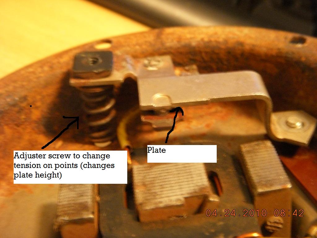 When you turn the adjuster screw it changes the height of the point tab which changes the amount of contact the points make and then changes the tone of the horn.