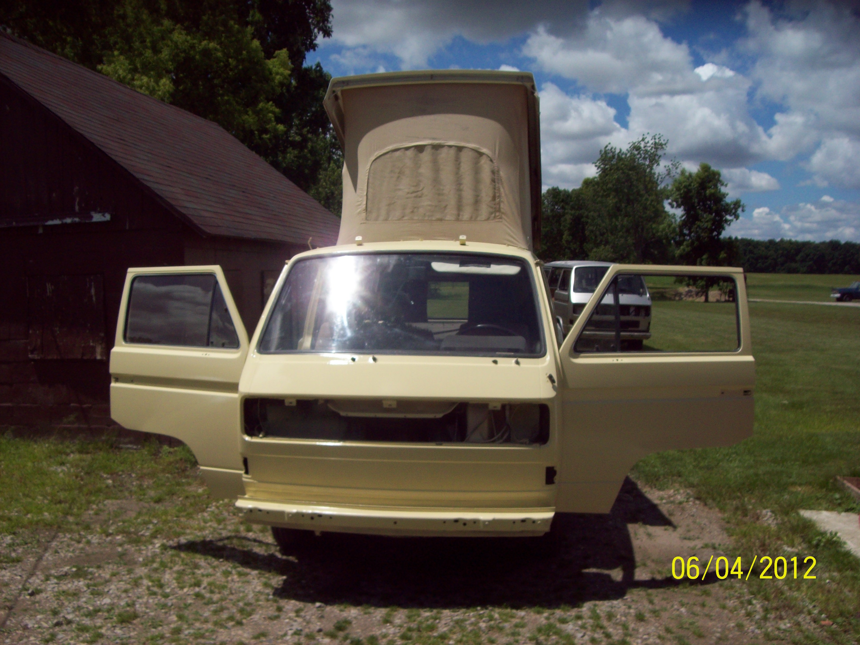 hears a little for josh,sandpaper started w/25 year old 220 grit some places i started w/100 grit,butt 220 was the majority of the sanding,i sujest throwing the old paper away and buying 3m at ur local parts store,wet and dry.paint is a sigle stage spary it on and drive it away.115.00 a gallon,urthan i beleive.as far materials price it comes in around 450.00 give or take a few dollars and i still have about a half gallon left.so i can paint trailer to match.this dollar amout include sand paper paint thinner prepsal (which you don t need) hardner a little pricey mixing cups stir sticks masking tape and an 11.00 roll of craft paper,news paper is just a pain to work with.i borrowed a sprayer from a freind they can be purchased for as little as forty dollars and the price just goes up.i would recomend this project to some with a detached garage,it does get messy.and the paint smell lingers for some time,oh yes buy a resperater.i will use this for other project now that i see and feel what thay do for your well being.well worth it.once agin 3m product.35.00 do not buy the p.o.s. for 20.00! i have about forty or less hours in this project and i am almost finshed puttn her back together.i do have several blems in the paint wind bugs were an issue. lite is very important one resons for my runs.i could not really see the paint first layers appear to be invisible.butt this is still a live and learn project very glad i started and can t wait to finsh.as josh said,thosands saved yes.i did not get any body work prices but i think n on the low end for what i did at least 2300.00,and probaly would not have been happy.i did do 2 repairs pretty indepth.one under my water and eletric hookups and the other on the nose at the bottom where the radator grill is on the water cooled.i will post some more pics (not of the blems) of finshed project once i take the pics.thats all i got for now,john