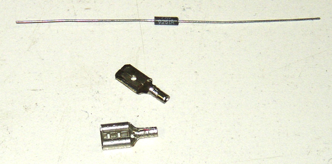 Here's a nice way to install it with a male and female spade so it goes in series on the power lead on the back of the gauge. When I tested this on my bus the voltage at the gauge was exactly 6v. This makes the gauge more accurate as it loses some of its accuracy running on 12v.