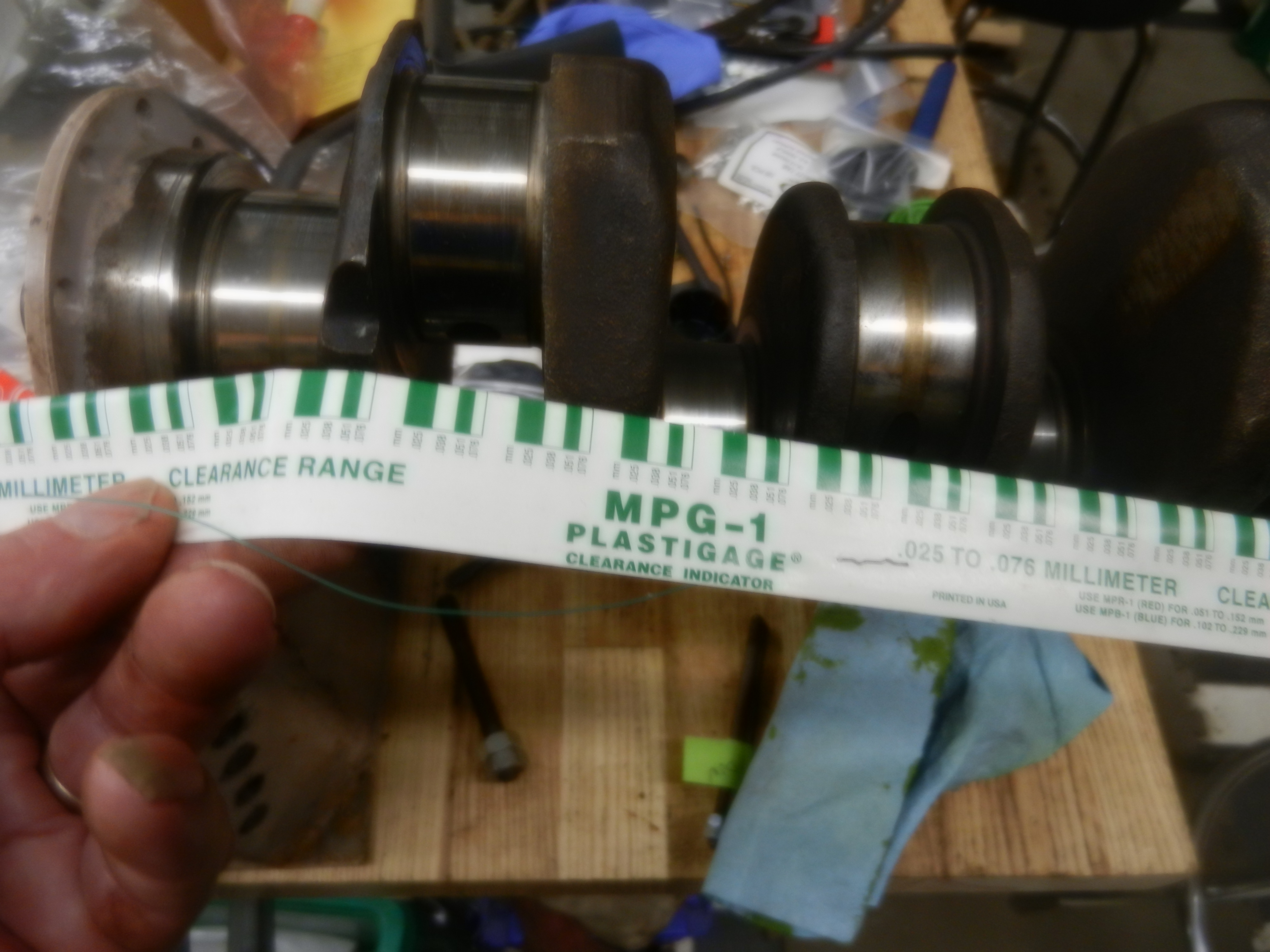 NOTE: since the machine shop had the rods,and bearings, and also the crank shaft,flywheel and pressure plate in order to balance that rotating assembly, I had them take these measurements. But, I am going to mock this up to show the procedure. Now CAREFULLY install the rod and torque to spec. This is tricky as you don't want to move the rod and smear the plastigage. Then, CAREFULLY, remove the rod. Also tricky so as not to smear the plastigage.