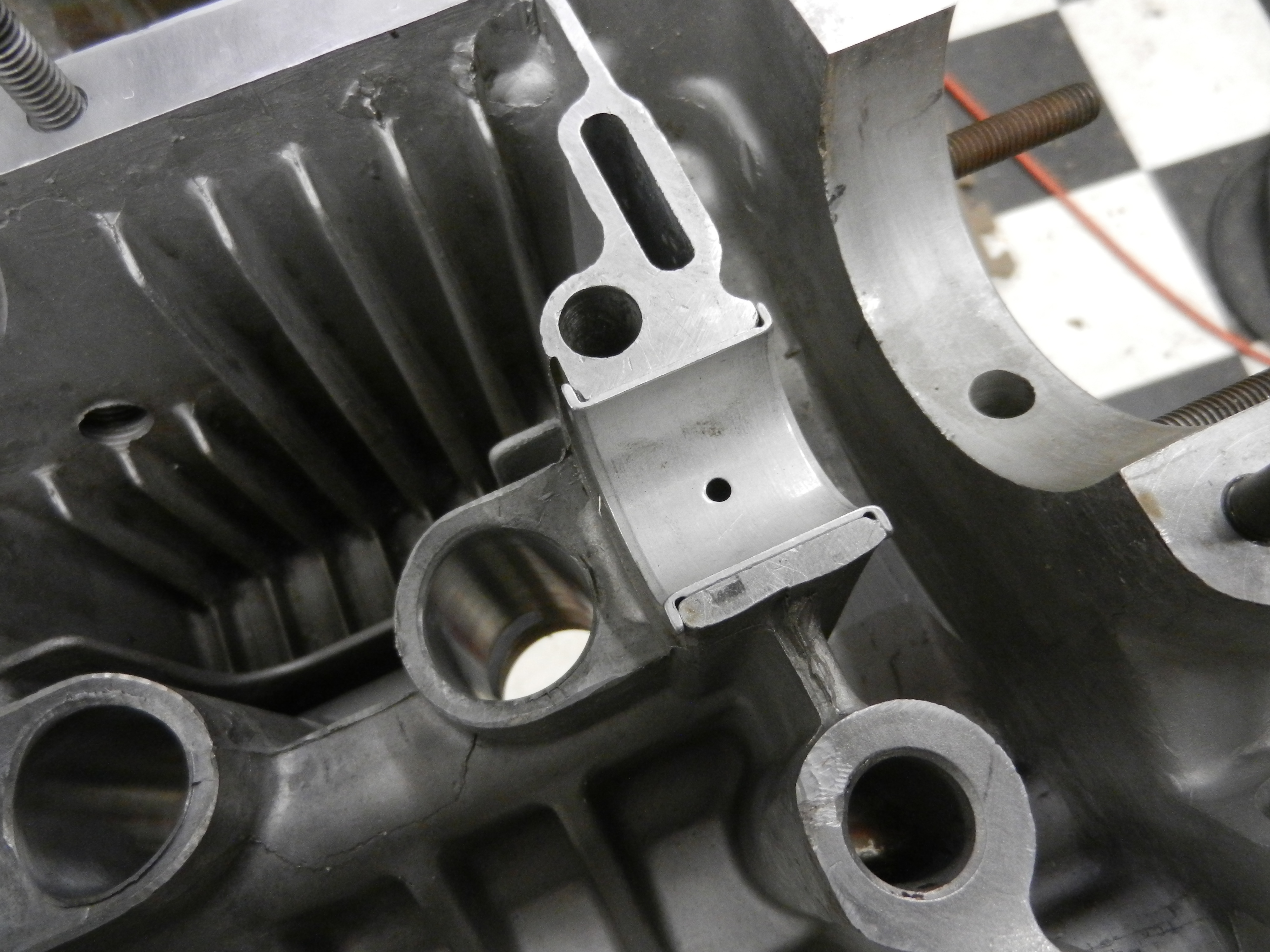The one on the right is a 914 used with a windage tray,which I did not use. Check the treads for the sump cover. align the mounting hole in the pick up with the case threaded hole. Do this now or have problems when you bolt the case halves together.
