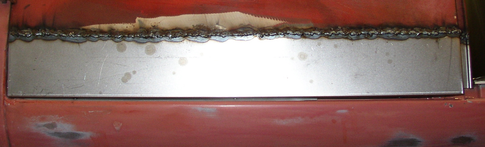 Weld the plug welds and inner panelFrom the outside, the welds have good penetration.