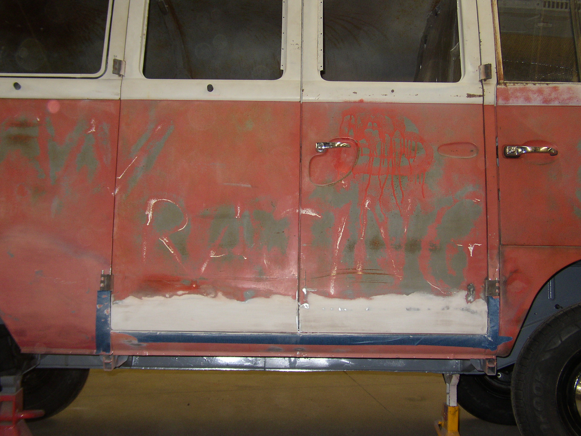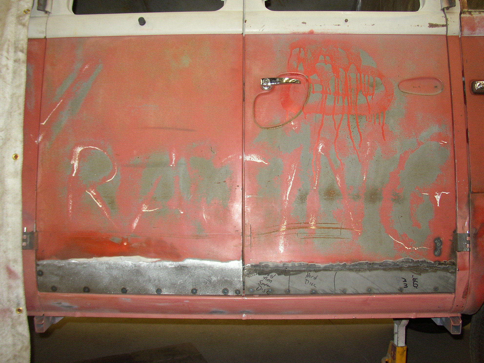 OK, I left off starting to weld the left cargo door. Sean says he wants a welding tutorial, so this may take some time. Go get something out of the fridge.