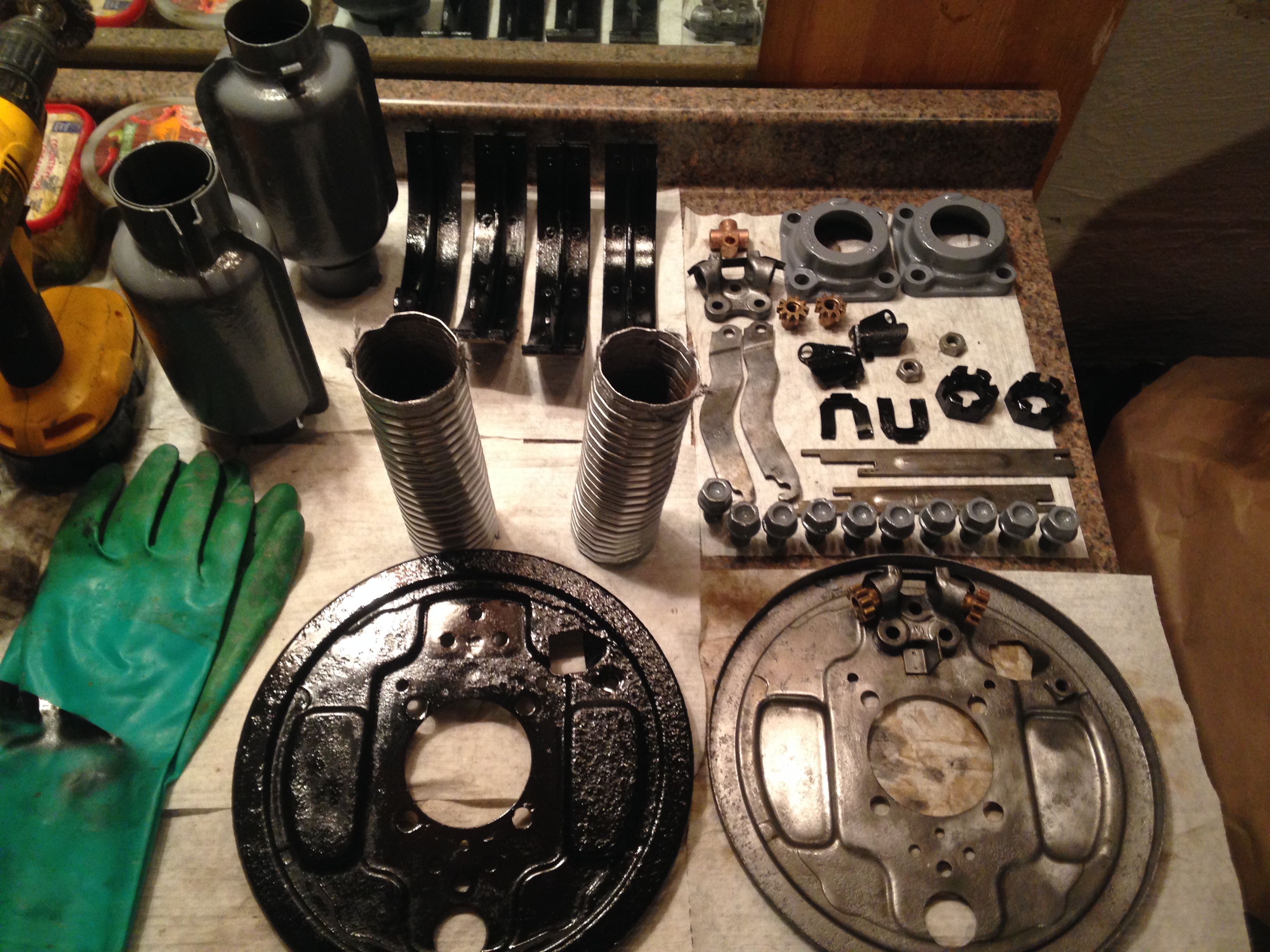 Scraping loose rust, then wire wheel, sandpaper, brushes and whatever else it takes to get all the scale off and down to useable metal. Then POR15 top coated with Bed liner. Bed liner is paintable, so I can spray wheel wells when I paint the bus (in 2018).