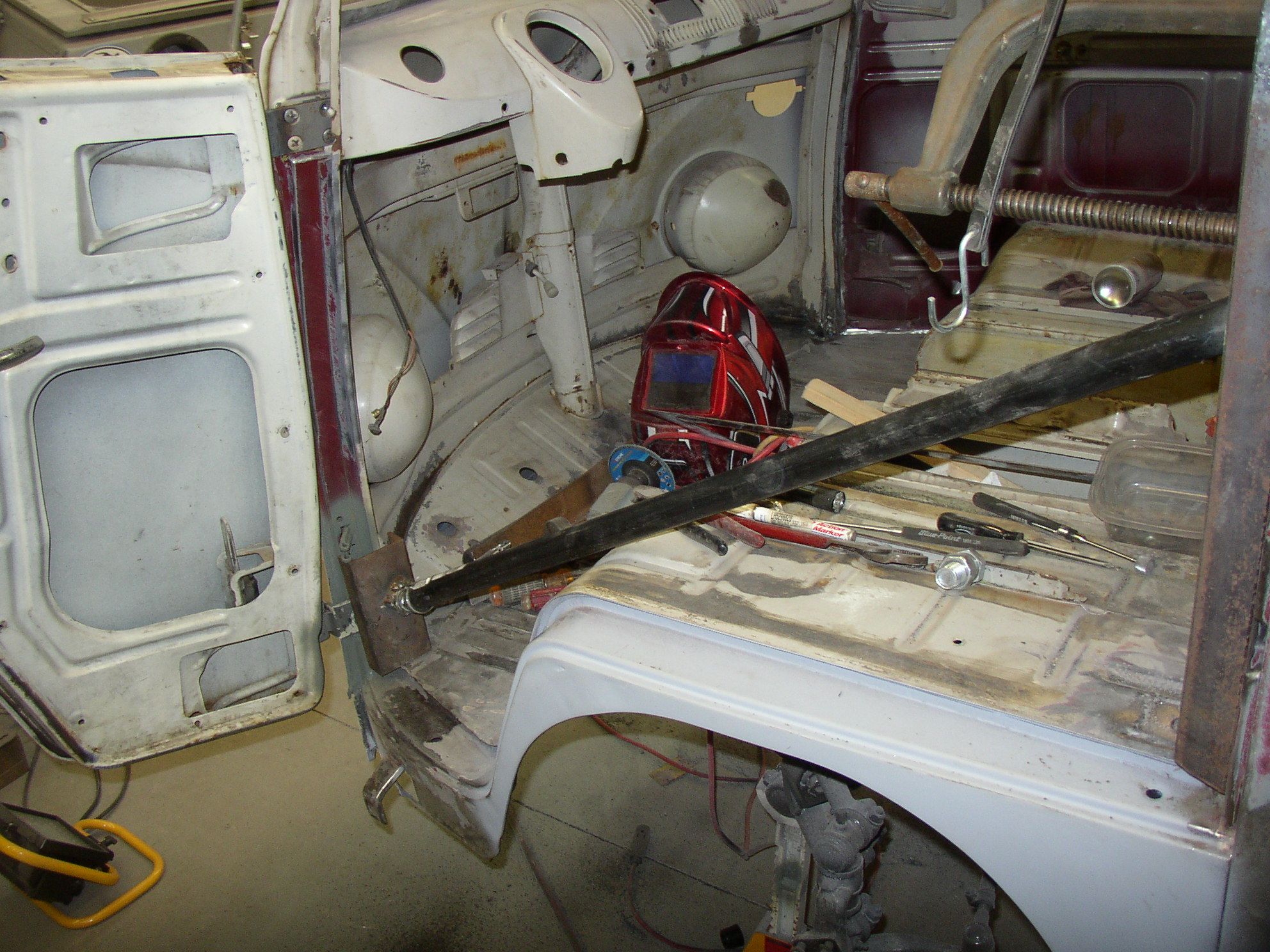 It doesn't fit very good, not because of the door but because when this bus was tapped in the old driver's door it evidently pulled the A post rearward about 1/4", which is just enough to screw up the door gaps. Evidently it had a "custom one off" driver's door on it before, because it fit and worked perfect.