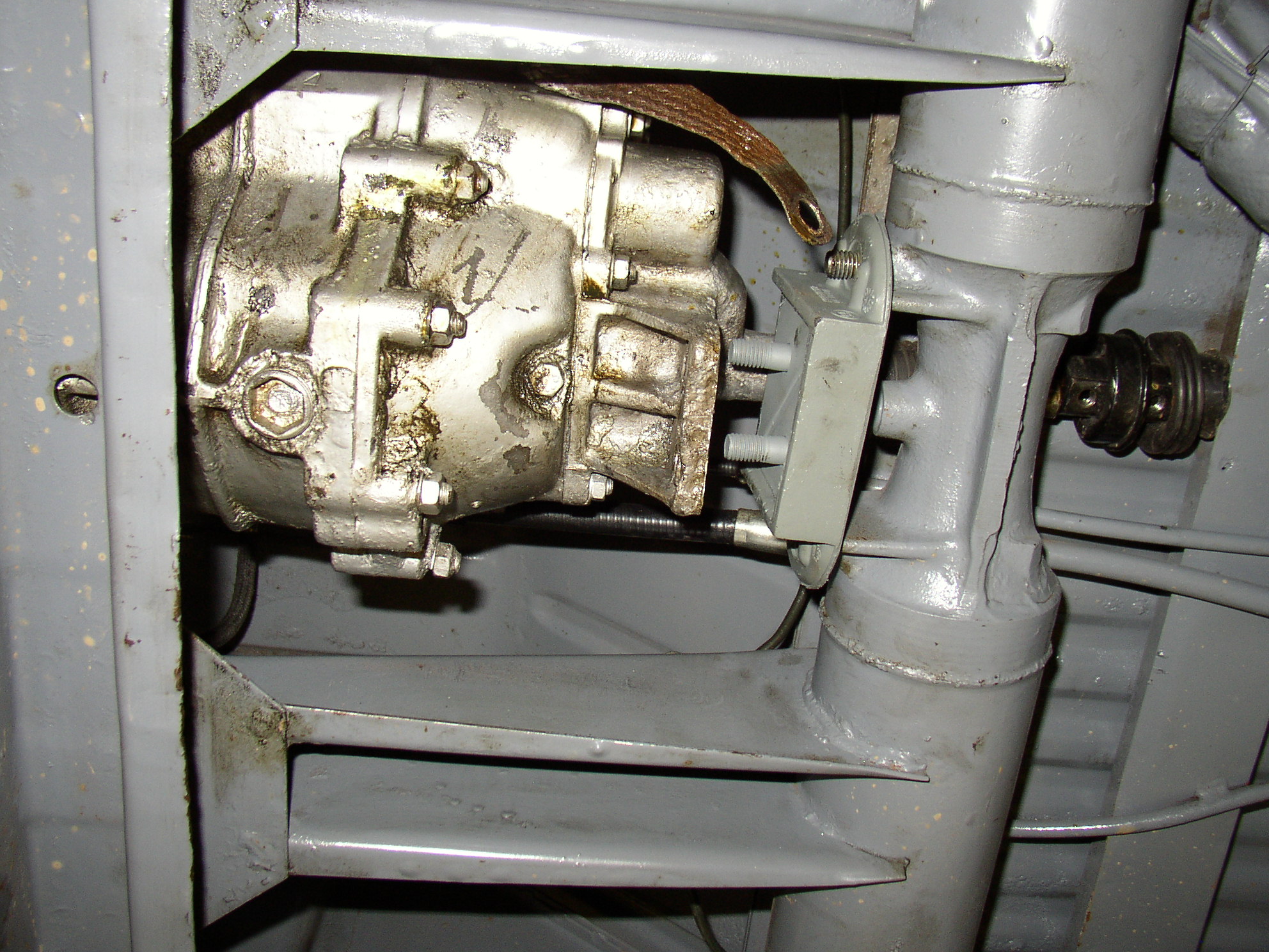 The tranny is a bit tired in Bus 2 and it probably deserves a new one. It actually works pretty well but leaks from the gearcase. I dug through my junk cores to find a suitable unit with the right R&P, I don't even remember where this one came from, probably a swap meet. I popped the side cover to verify ratio, it's 33/8 which is what I want, 4.125. Several others were 35/8 which is 4.37, a good city gear but really screams on the highway, and with the 1904 I should use the taller gear. I'm pretty sure it has a 4.12 in it right now and I definitely don't want to go lower.