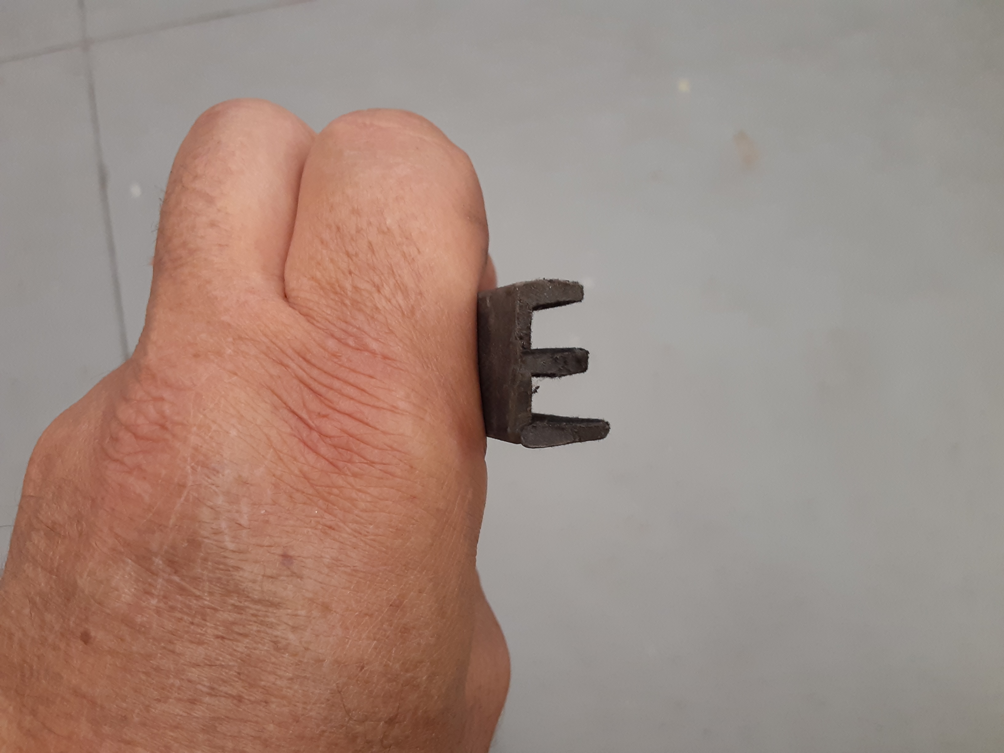 Something was funny about the hockey stick, Jim warned me. It turned out the one I had was wrong and the dimple was drilled about 20 degrees from where it should be. Both of these are wrong.