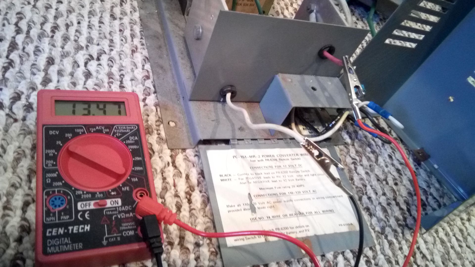 set the multimeter on 20v DC and checked for 12 volts across the freshly cleaned up red and white wires coming out of the transformer; It's good!