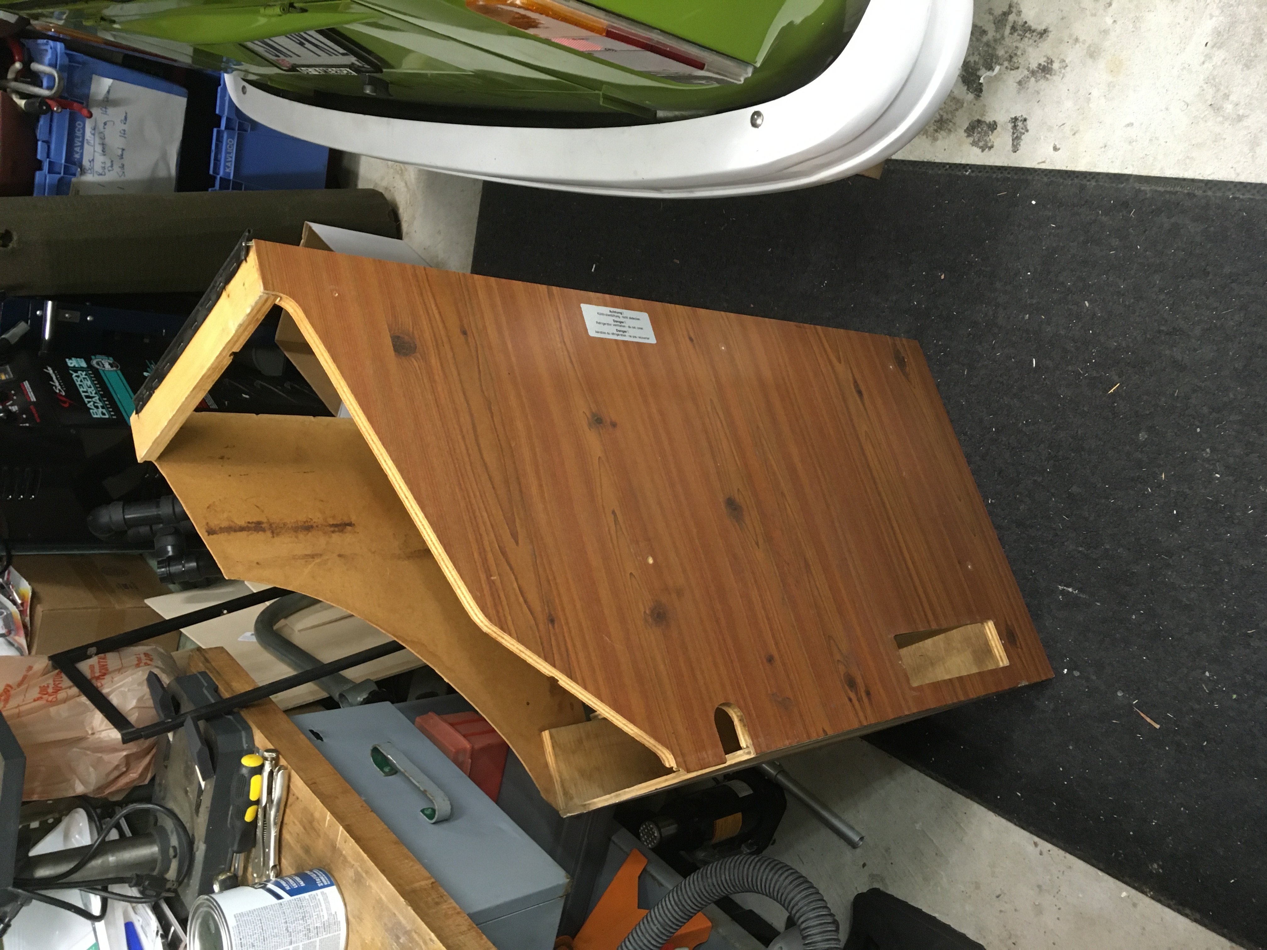 Today I worked on the refrigerator cabinet. It had a bit of water damage from the vent window that had been leaking. There was a piece of laminate missing on one end and a layer of the plywood underneath. I mixed some epoxy wood filler to level out the missing plywood layer and the will glue in a new piece of laminate. The bottom of the cabinet had begun to delaminate so I glued that back together and then used some epoxy filler for the gaps. The rail that the refrigerator lid and storage compartment lid attached to had loose holes were the hinge attached. I used some gorilla glue and toothpicks to fill the holes and the drilled new smaller holes My son and I cleaned and polished the galvanized sides of the fridge. Tomorrow I plan to sand and varnish the bottom area under the fridge and back side. The laminate on the front is in pretty good shape.