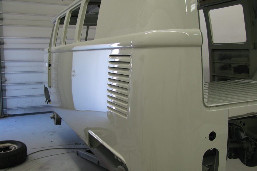 Checked on the Westy today. Every little ding and crease has been filled in, sanded down, and primered. The color should be going on this week.